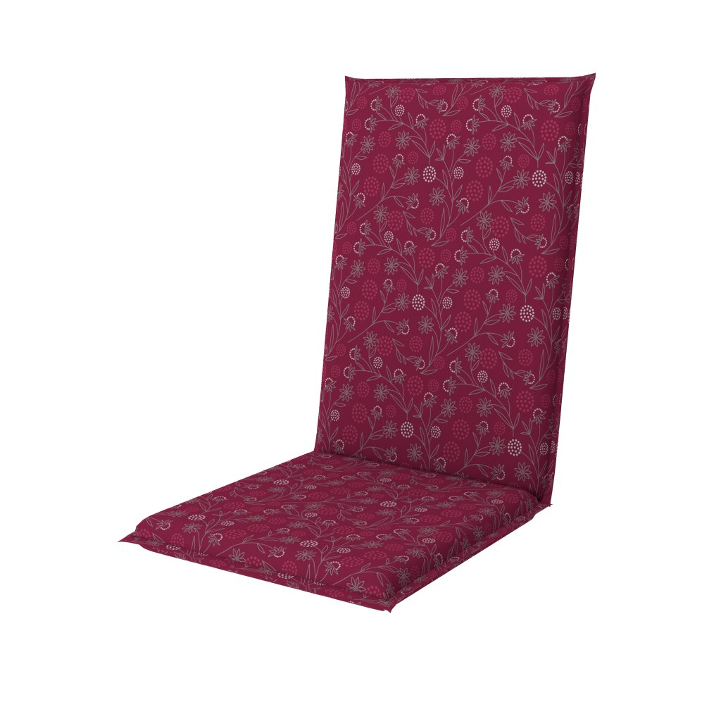 Poduszka z wysokim oparciem z serii LIVING do mebli ogrodowych jest wykonana z obszytym brzegiem, pikowana pierścieniowo 4x w oparciu. Mocowanie odbywa się za pomocą przesuwnego klipsa. Dzięki klipsowi można dopasować rozmiar do wymiarów i rodzaju krzesła, klips jest mocny i się nie rozciąga. Mocowanie siedziska odbywa się za pomocą dwóch sznurków w zgięciu poduszki. Grubość poduszki jest optymalna dla wszystkich rodzajów krzeseł. Wersja nadaje się również do trudnych warunków kawiarni, ogródków i restauracji. Pokrowiec jest nieściągalny.
