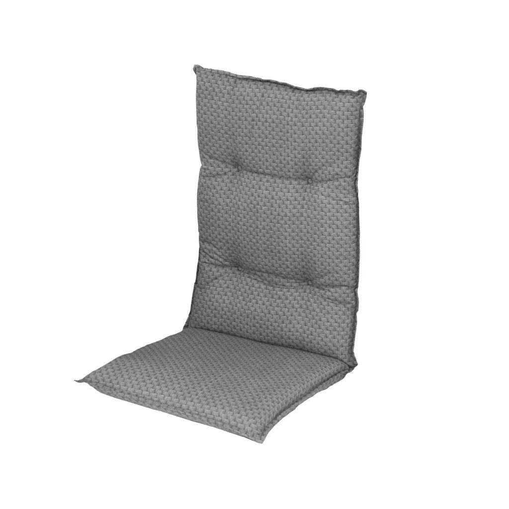 Poduszka z wysokim oparciem do mebli ogrodowych z serii LIVING jest wykonana z obszytym brzegiem, pikowana pierścieniowo 4x w oparciu. Mocowanie odbywa się za pomocą przesuwnego klipsa. Dzięki klipsowi można dopasować rozmiar do wymiarów i rodzaju krzesła, klips jest mocny i się nie rozciąga. Mocowanie siedziska odbywa się za pomocą dwóch sznurków w zgięciu poduszki. Grubość poduszki jest optymalna dla wszystkich rodzajów krzeseł. Wersja nadaje się również do trudnych warunków kawiarni, ogródków i restauracji. Pokrowiec jest nieściągalny.