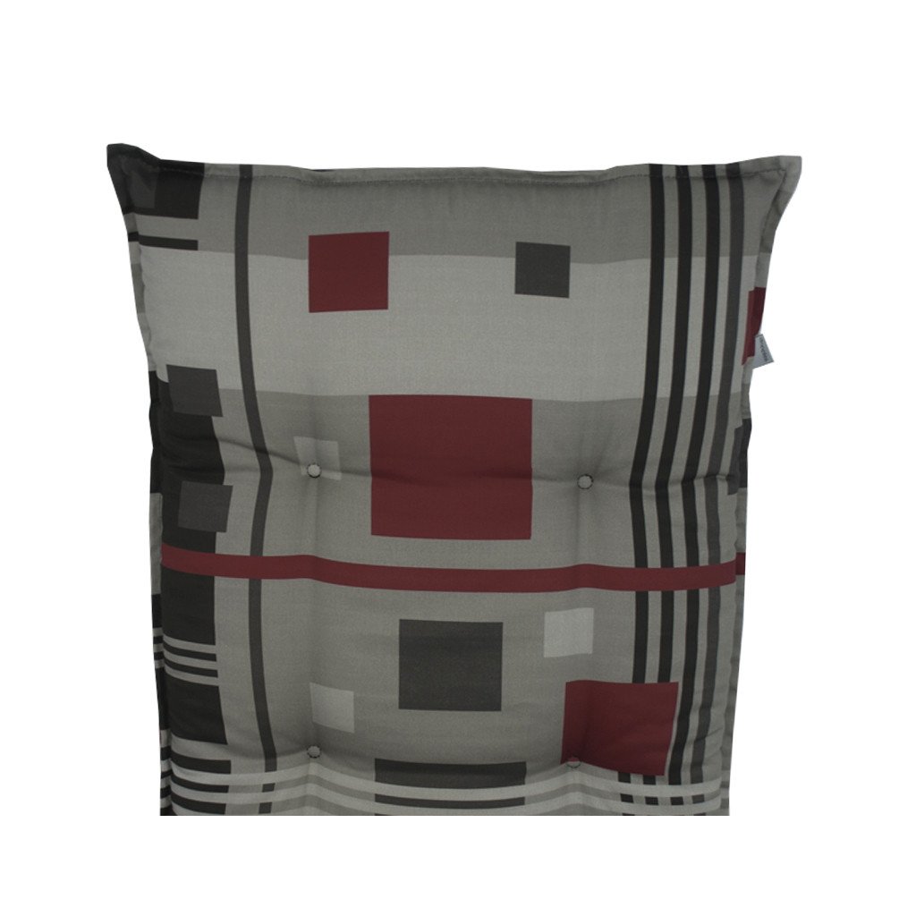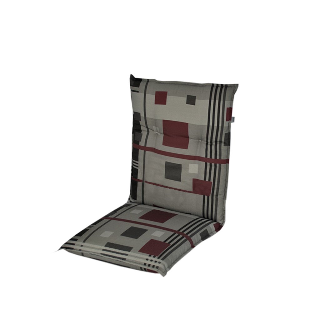 Poduszka z niskim oparciem do mebli ogrodowych z serii LIVING jest wykonana z obszytym brzegiem, pikowana pierścieniowo 2x w oparciu. Mocowanie odbywa się za pomocą przesuwnego klipsa. Dzięki klipsowi można dopasować rozmiar do wymiarów i rodzaju krzesła, klips jest mocny i się nie rozciąga. Mocowanie siedziska odbywa się za pomocą dwóch sznurków w zgięciu poduszki. Grubość poduszki jest optymalna dla wszystkich rodzajów krzeseł. Wersja nadaje się również do trudnych warunków kawiarni, ogródków i restauracji. Pokrowiec jest nieściągalny.