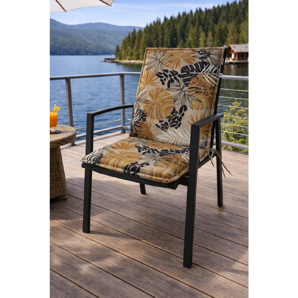 Poduszka ze średnim oparciem z serii LIVING jest w wersji z obszytym brzegiem, pikowana pierścieniowo 2x w oparciu. Mocowanie odbywa się za pomocą przesuwnego klipsa. Dzięki klipsowi można dostosować rozmiar do wymiarów i rodzaju krzesła, klips jest mocny i się nie rozciąga. Mocowanie siedziska odbywa się za pomocą dwóch sznurków w zgięciu poduszki. Grubość poduszki jest optymalna dla wszystkich rodzajów krzeseł. Wersja jest odpowiednia nawet do trudnych warunków kawiarni, ogródków i restauracji. Pokrowiec jest nieusuwalny.