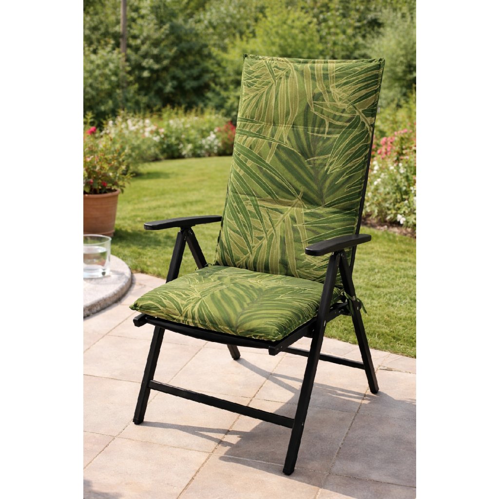 Poduszka z wysokim oparciem z serii LIVING jest w wersji z obszytym brzegiem, pikowana pierścieniowo 4x w oparciu. Mocowanie odbywa się za pomocą przesuwnego klipsa. Dzięki klipsowi można dopasować rozmiar do wymiarów i rodzaju krzesła, klips jest mocny i się nie rozciąga. Mocowanie siedziska odbywa się za pomocą dwóch sznurków w zgięciu poduszki. Grubość poduszki jest optymalna dla wszystkich rodzajów krzeseł. Wersja nadaje się również do trudnych warunków kawiarni, ogródków i restauracji. Pokrowiec jest nieściągalny.