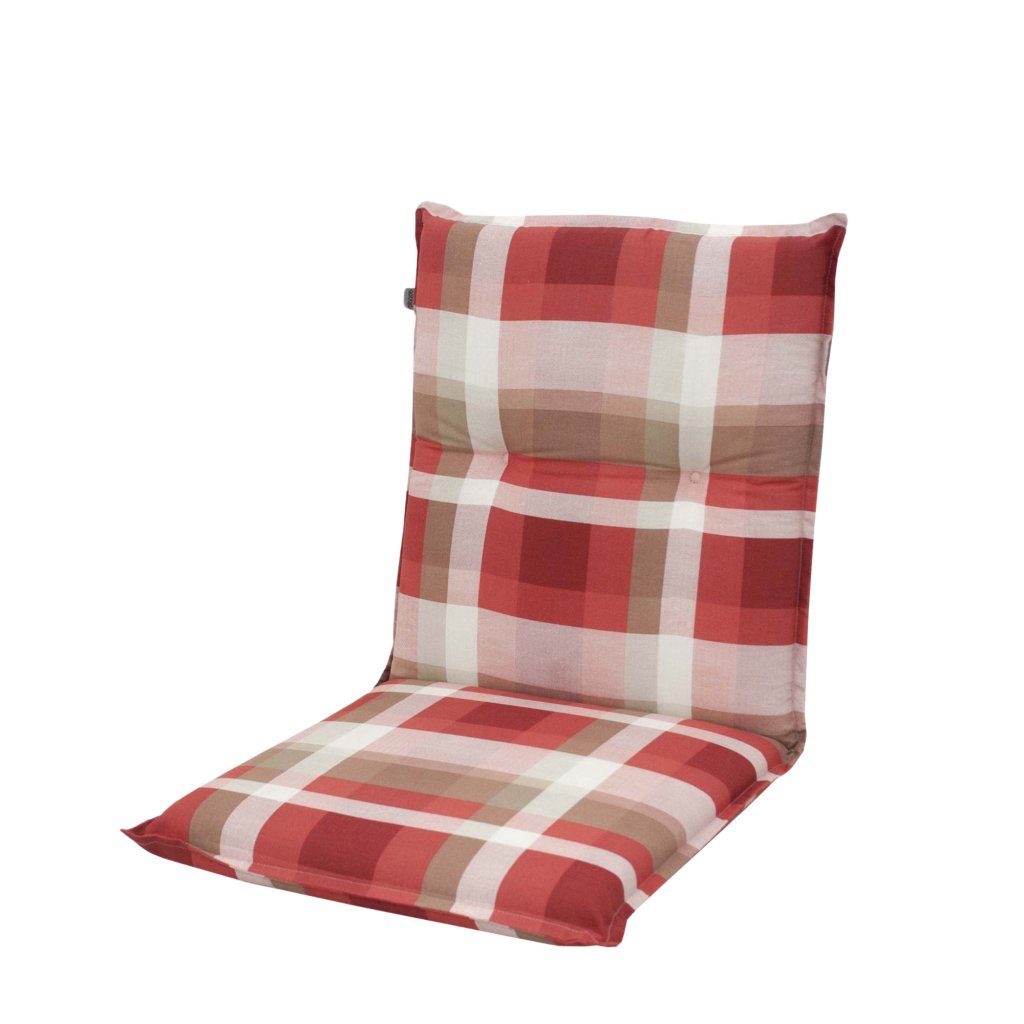 Poduszka z niskim oparciem na meble ogrodowe z serii LIVING jest wykonana z obszytym brzegiem, pikowana pierścieniowo 2x w oparciu. Mocowanie odbywa się za pomocą przesuwnego klipsa. Dzięki klipsowi można regulować rozmiar w zależności od wymiaru i rodzaju krzesła, klips jest mocny i się nie rozciąga. Mocowanie siedziska odbywa się za pomocą dwóch sznurków w zgięciu poduszki. Grubość poduszki jest optymalna dla wszystkich rodzajów krzeseł. Wykonanie nadaje się również do trudnych warunków kawiarni, ogródków i restauracji. Pokrowiec jest nieściągalny.