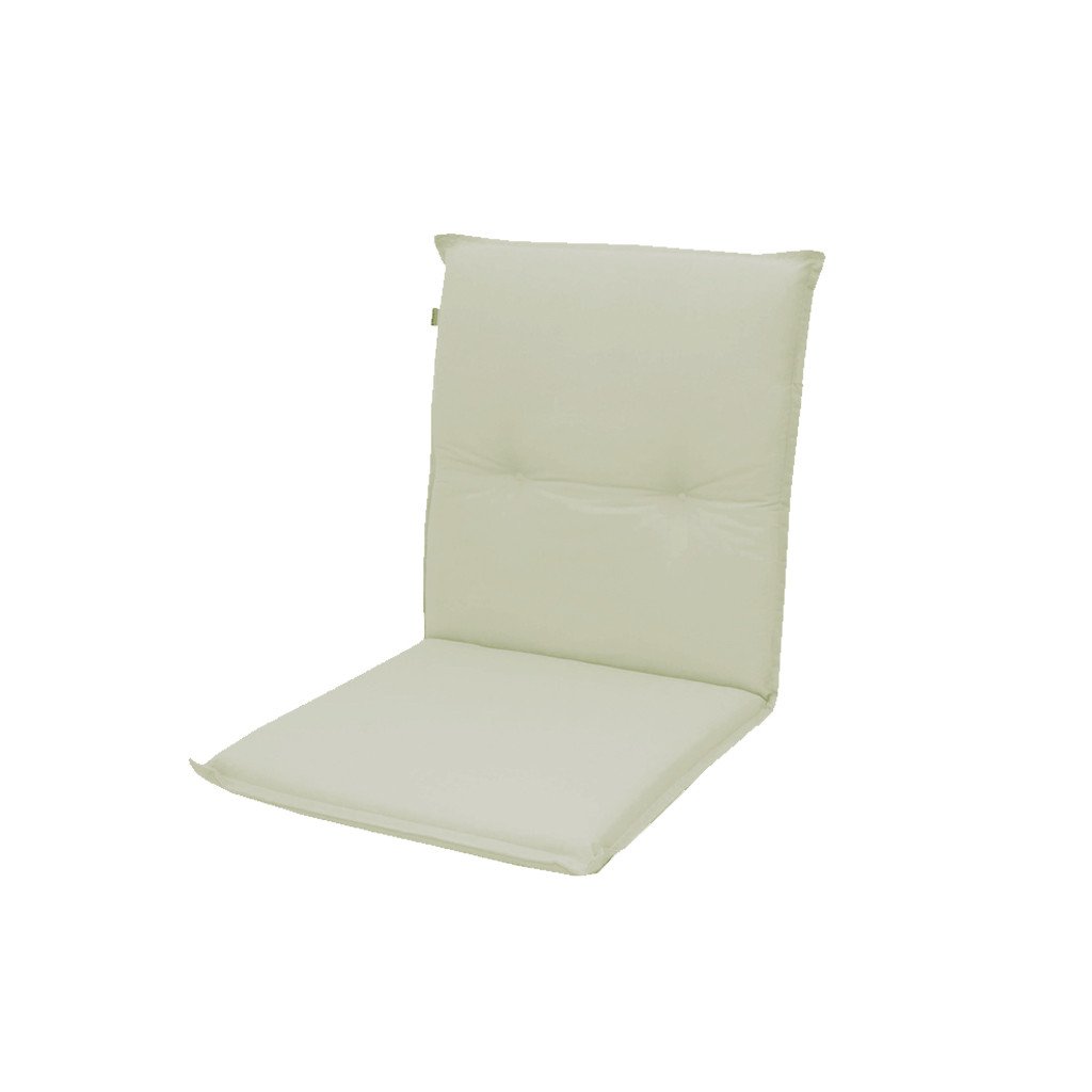 Poduszka z niskim oparciem do mebli ogrodowych z serii LIVING jest wykonana z obszytym brzegiem, pikowana pierścieniowo 2x w oparciu. Mocowanie odbywa się za pomocą przesuwnego klipsa. Dzięki klipsowi można dopasować rozmiar do wymiarów i rodzaju krzesła, klips jest mocny i się nie rozciąga. Mocowanie siedziska odbywa się za pomocą dwóch sznurków w zgięciu poduszki. Pokrowiec jest nieściągalny.