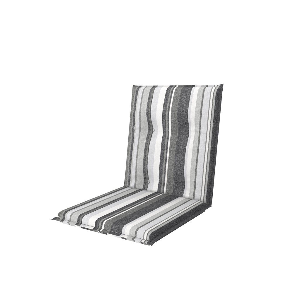 Poduszka z niskim oparciem na meble ogrodowe z serii LIVING jest w wersji z obszytym brzegiem, pikowana pierścieniowo 2x w oparciu. Mocowanie odbywa się za pomocą przesuwnego klipsa. Dzięki klipsowi można ustawić rozmiar według wymiarów i rodzaju krzesła, klips jest mocny i się nie rozciąga. Mocowanie siedziska odbywa się za pomocą dwóch sznurków w zgięciu poduszki. Grubość poduszki jest optymalna dla wszystkich rodzajów krzeseł. Wykonanie nadaje się również do trudnych warunków kawiarni, ogródków i restauracji. Pokrowiec jest nieściągalny.