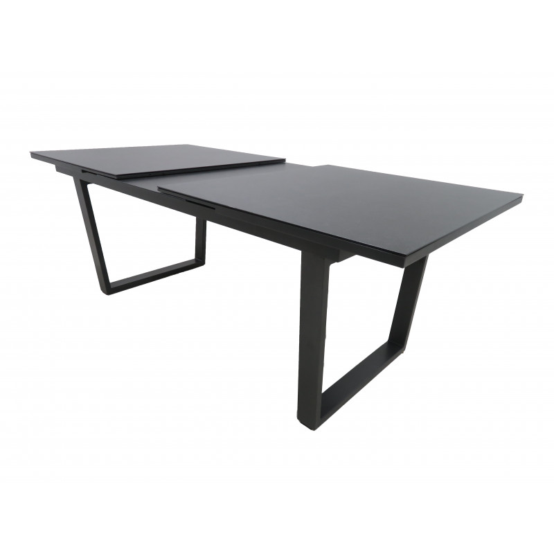 Duży stół ogrodowy to nowoczesny, ponadczasowy mebel ogrodowy. Proste i czyste linie stolika pasują do każdego otoczenia. Konstrukcja stolika wykonana jest z wysokiej jakości stopu aluminium w kolorze antracytowym. Blat stołu wykonany jest z 5 mm szkła z powłoką imitującą wygląd ceramiki.