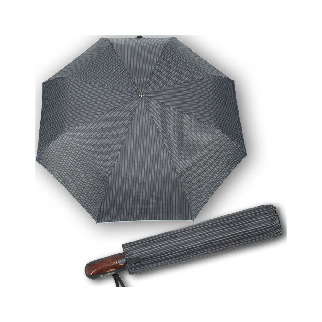 Partnerski w pełni automatyczny składany parasol. Pokrowiec czarny z szarym wzorem. Bardzo wysokiej jakości konstrukcja wykonana ze szkła, stali i włókna węglowego. Dwa ostatnie segmenty wykonane z włókna szklanego, co zapobiega uszkodzeniu parasola podczas wiatru i ułatwia jego powrót do pierwotnej pozycji. Duży dach i praktyczne etui na zamek błyskawiczny. Poliestrowa poszycie jest odporne na zmiany wilgotności i temperatury, nie kurczy się.
