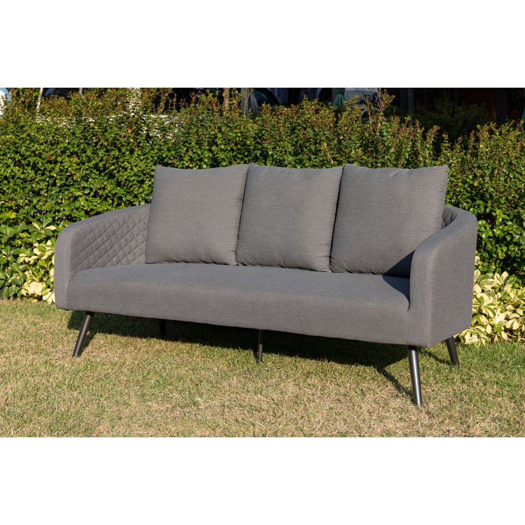 Sofa Melia Likatex zapewnia luksusowy komfort i nowoczesne wzornictwo. Dzięki eleganckiej antracytowej konstrukcji i miękkiej tapicerce w odcieniu szarości stanie się centrum uwagi każdej przestrzeni. Wykonana jest z wysokiej jakości aluminiowej konstrukcji, która jest nie tylko lekka i łatwa w obsłudze, ale także wyjątkowo wytrzymała. Tapicerka wykonana jest z tkaniny LIKA-TEX®, materiału przeznaczonego do całorocznego użytku zewnętrznego, odpornego na warunki atmosferyczne i łatwego w utrzymaniu. Dzięki temu nie musisz obawiać się, że sofa straci swój wygląd nawet przy długotrwałym wystawieniu na działanie czynników zewnętrznych.