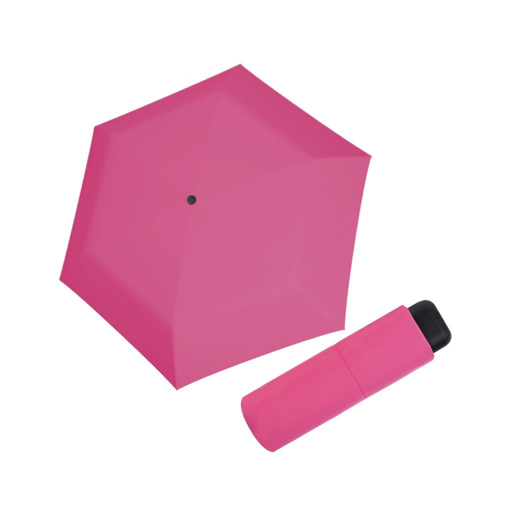 Micro slim to elegancki, składany parasol o kompaktowych rozmiarach, idealny w podróży. Dzięki niskiej wadze (176 gramów) i długości 17 cm z łatwością zmieści się nawet w mniejszej torebce czy torbie. Parasol ma wytrzymałą stalową konstrukcję w kolorze czarnym i jednokolorowe pokrycie z pongee. Ta cienka tkanina jest przyjemna w dotyku, a jednocześnie dobrze opiera się zmianom wilgotności i temperatury, nie kurczy się.
