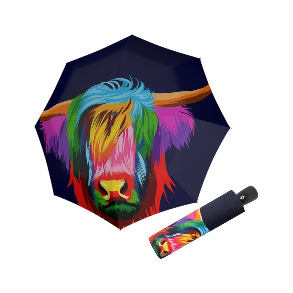 Damski w pełni automatyczny parasol z motywem. Bardzo wysokiej jakości czarna konstrukcja z włókna szklanego i stali. Dwa ostatnie segmenty wykonane z włókna szklanego, co zapobiega uszkodzeniu parasola podczas wiatru i ułatwia jego powrót do pierwotnej pozycji.