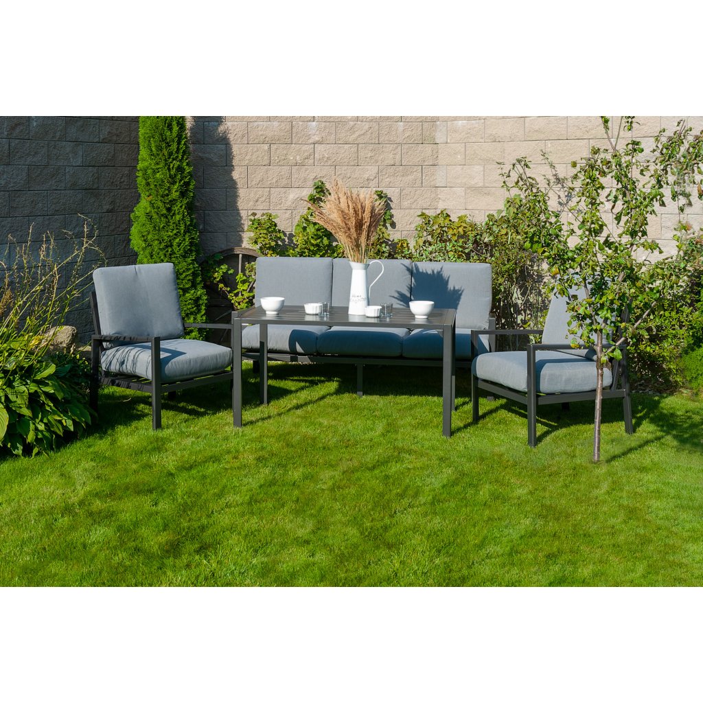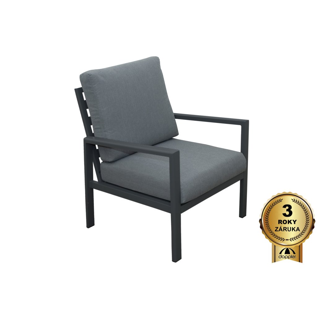 MORISS to tapicerowane aluminiowe krzesło ogrodowe, które wyróżnia się przede wszystkim jakością użytych materiałów i praktycznym, bezobsługowym wykonaniem. Posiada stabilną aluminiową konstrukcję w kolorze antracytowym, dzięki czemu krzesło jest mocne, stosunkowo lekkie i jednocześnie ma nowoczesny wygląd. Krzesło jest wyposażone w poduszki z wysokiej jakości tkaniny Olefin. Tkanina ta jest wysoce odporna na ścieranie, rozciąganie, ma wysoką trwałość kolorów i jest przyjemna w dotyku. Dodatkowo odstrasza brud i szybko schnie. Poduszki są w kolorze szarym z zamkiem błyskawicznym, dzięki czemu po wyjęciu wypełnienia pokrowce można prać.