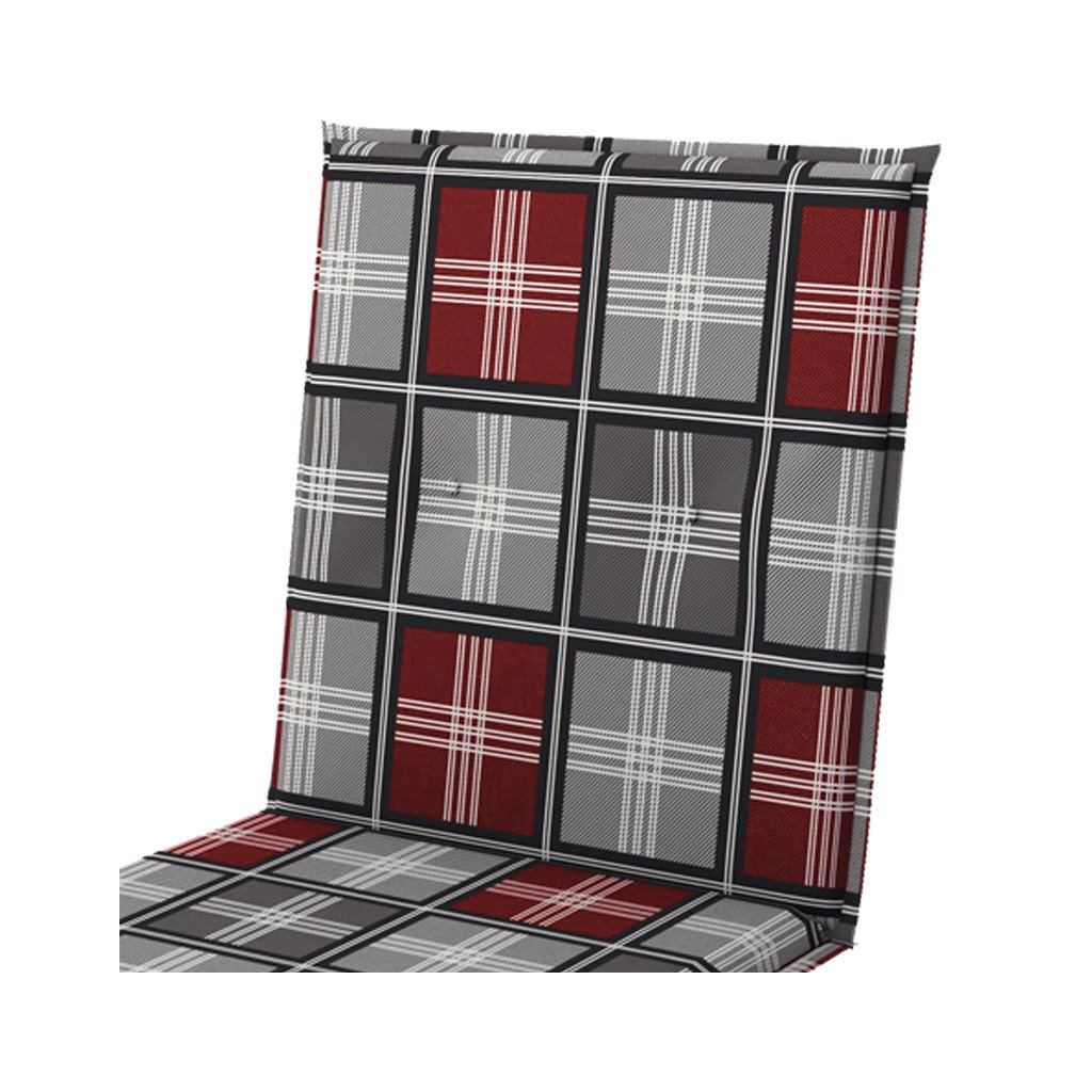 Poduszka z niskim oparciem do mebli ogrodowych z serii MOTION XL posiada wyjątkowo grube siedzisko z oparciem, które jest w eleganckim wykonaniu z obszytym brzegiem, pikowane pierścieniowo 2x w oparciu. Mocowanie odbywa się za pomocą przesuwnego klipsa. Dzięki klipsowi można dopasować rozmiar do wymiarów i rodzaju krzesła, klips jest mocny i się nie rozciąga. Mocowanie siedziska odbywa się za pomocą dwóch sznurków w zgięciu poduszki. Pokrowiec jest poddany specjalnej impregnacji zapobiegającej pleśni i brudowi. Dzięki tej impregnacji zanieczyszczenia pozostają na powierzchni impregnacji i nie przedostają się do poszczególnych włókien pokrowca, dzięki czemu tkanina jest łatwa do czyszczenia tylko wilgotną szmatką lub gąbką a poduszka jest bardziej odporna na wilgoć. Uwaga, poduszka nie jest wodoodporna. Pokrowiec jest nieściągalny.