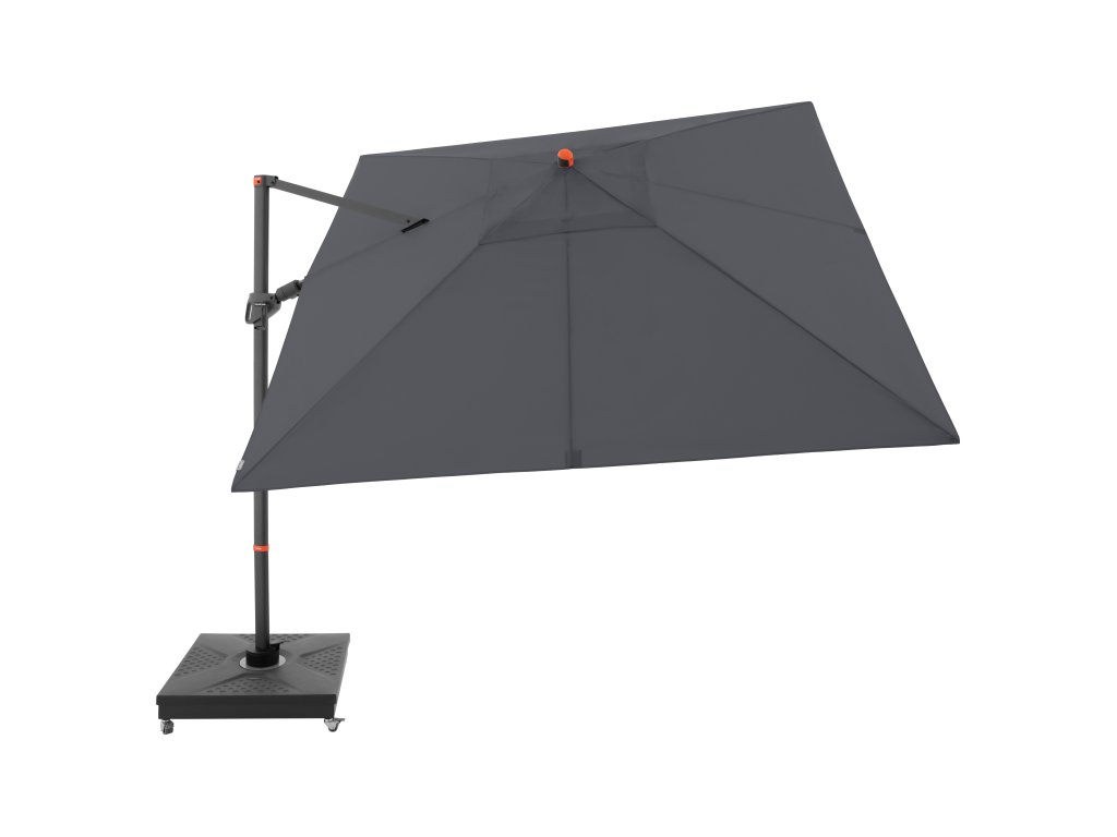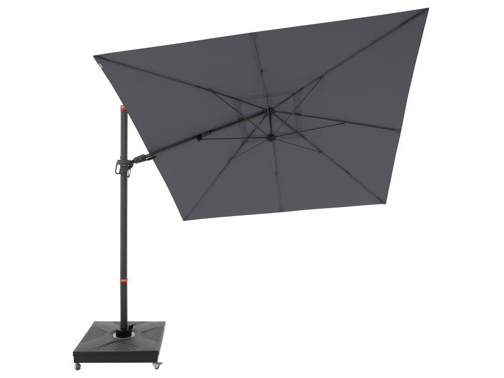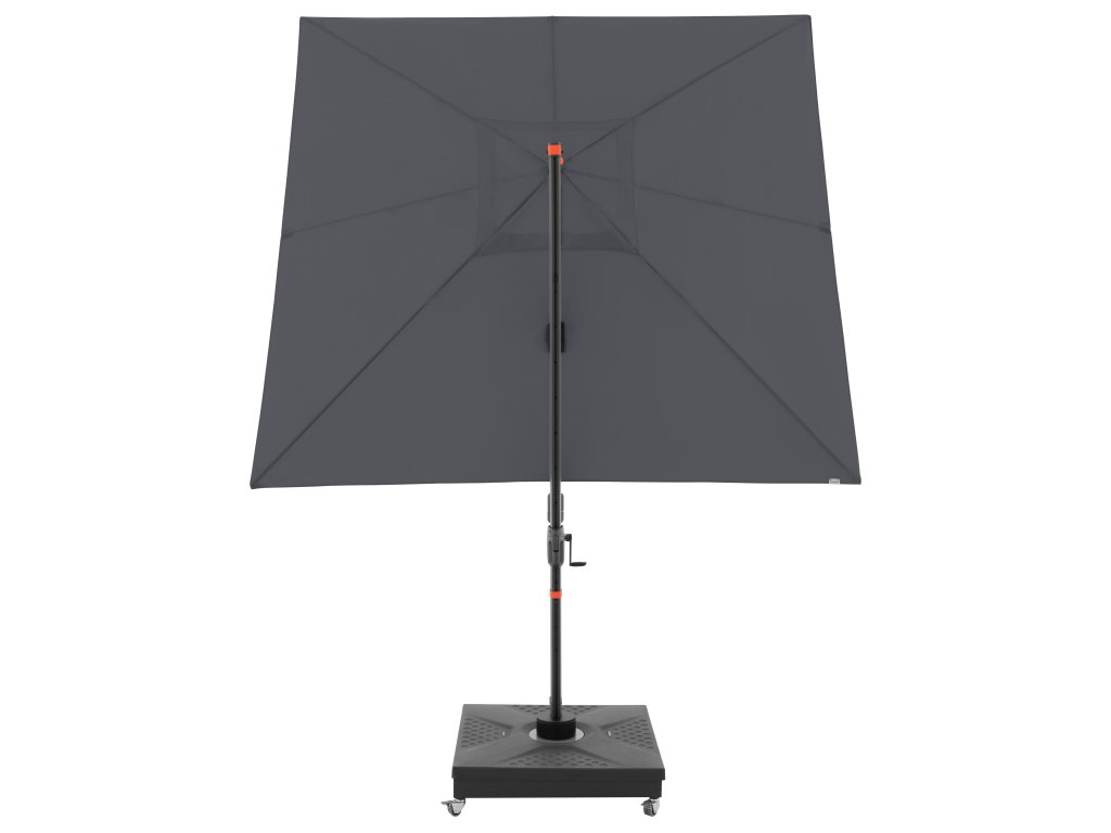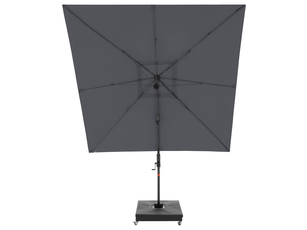 Dzięki kwadratowemu kształtowi czaszy parasol jest szczególnie odpowiedni do zacieniania mebli ogrodowych. Parasol można również obracać o 360 stopni, swobodnie obracać w obie strony i pochylać do tyłu w siedmiu pozycjach.