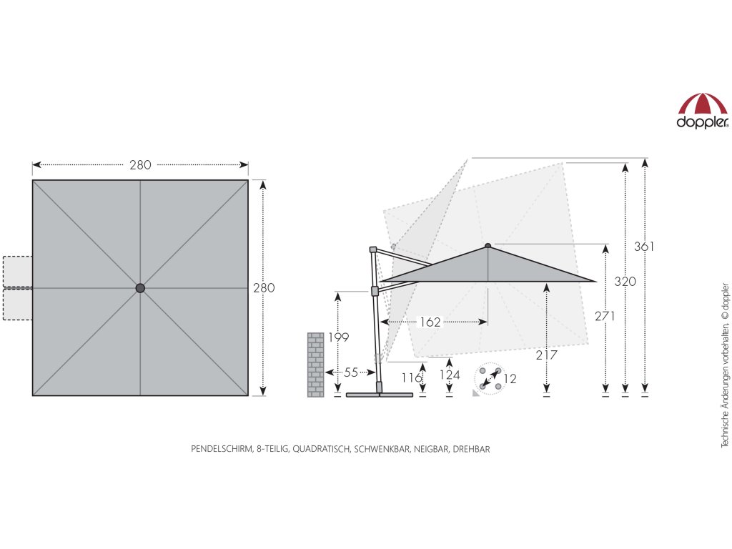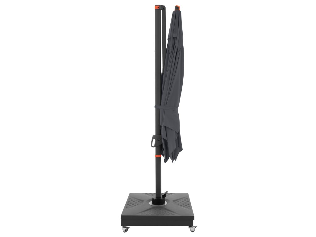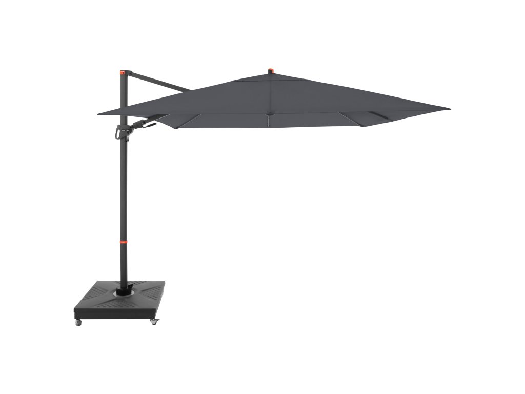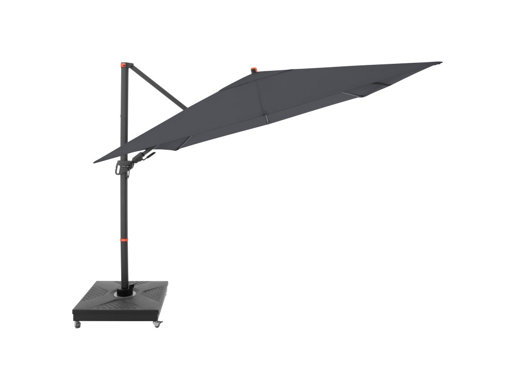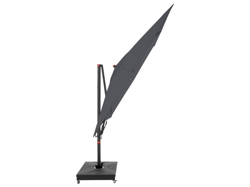 Dzięki kwadratowemu kształtowi czaszy parasol jest szczególnie odpowiedni do zacieniania mebli ogrodowych. Parasol można również obracać o 360 stopni, swobodnie obracać w obie strony i pochylać do tyłu w siedmiu pozycjach.
