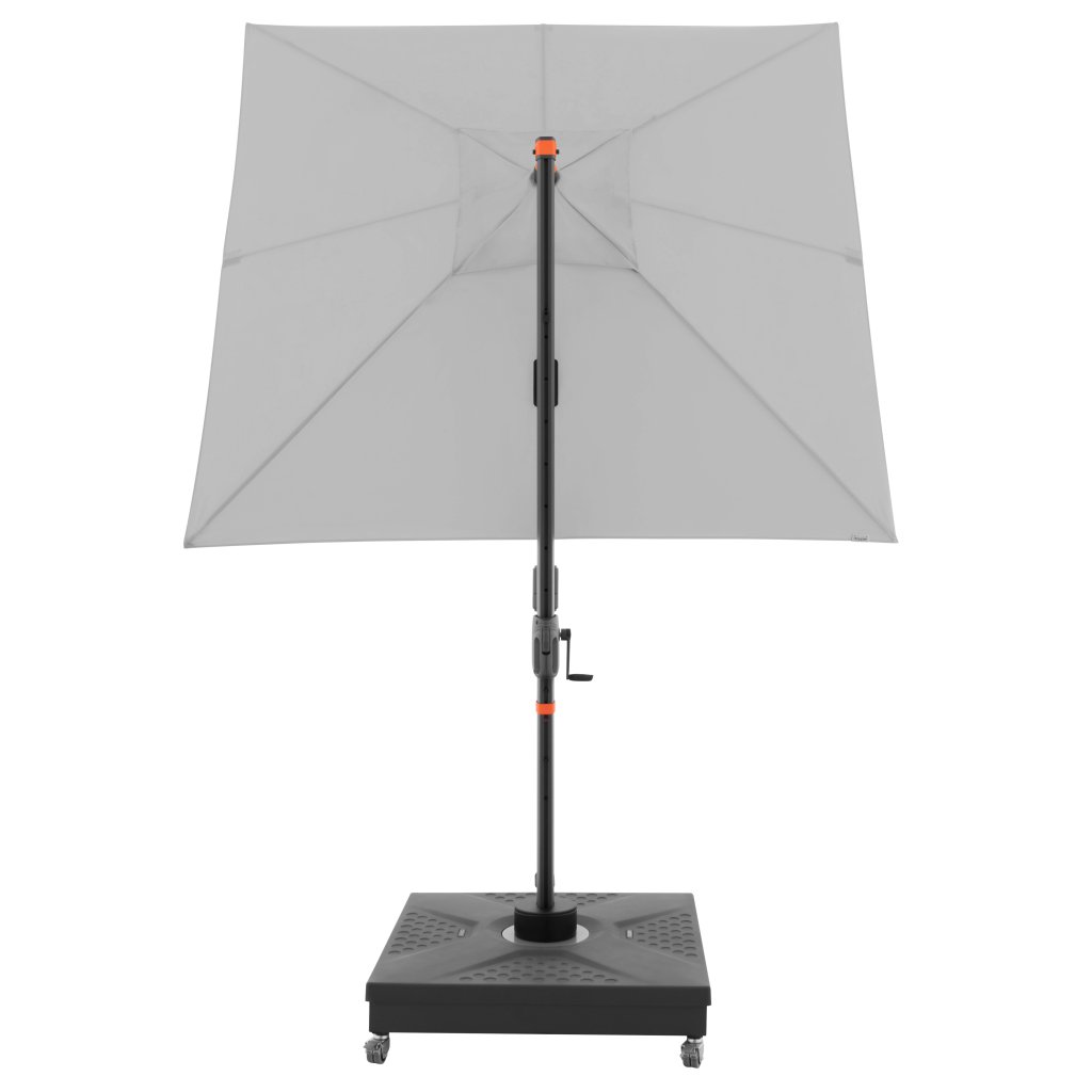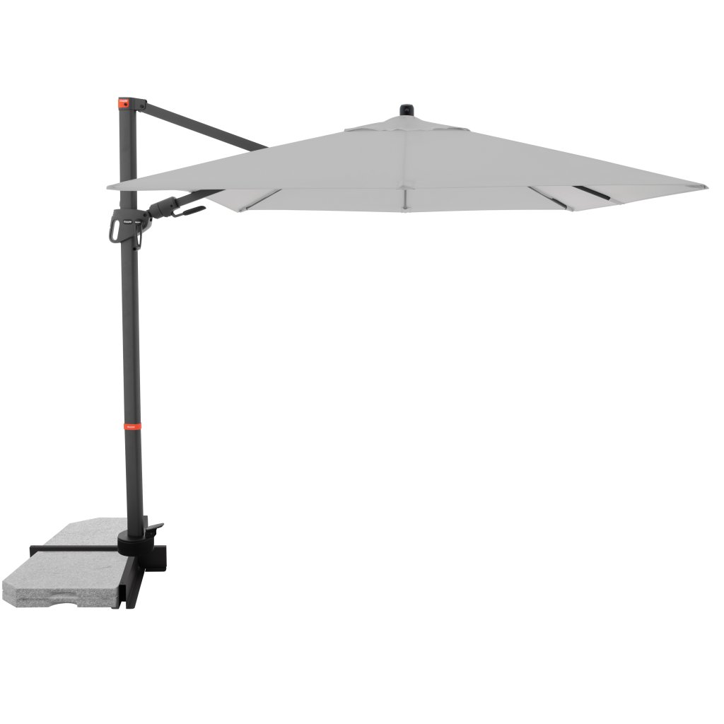 Dzięki kwadratowemu kształtowi czaszy parasol jest szczególnie odpowiedni do zacieniania mebli ogrodowych. Parasol można również obracać o 360 stopni, swobodnie obracać w obie strony i pochylać do tyłu w siedmiu pozycjach.