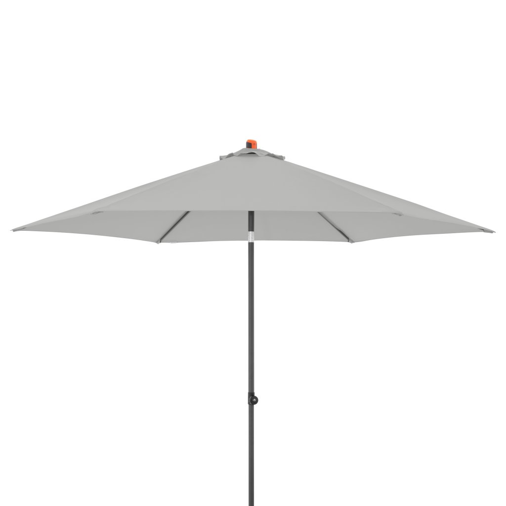 Odkryj gamę parasoli myZone i przekształć swoje ulubione miejsce w ogrodzie, na tarasie lub balkonie w swoją osobistą strefę dobrego samopoczucia. Z nowoczesnym wzornictwem, pomarańczowymi akcentami i najwyższej klasy współczynnikiem ochrony UV 60+ linia ta łączy estetykę z bezpieczną ochroną przed niebezpiecznym promieniowaniem UV. Malowana proszkowo na antracyt aluminiowa rama nadaje parasolowi lekkość i solidność, zapewniając długą żywotność i odporność na warunki atmosferyczne.