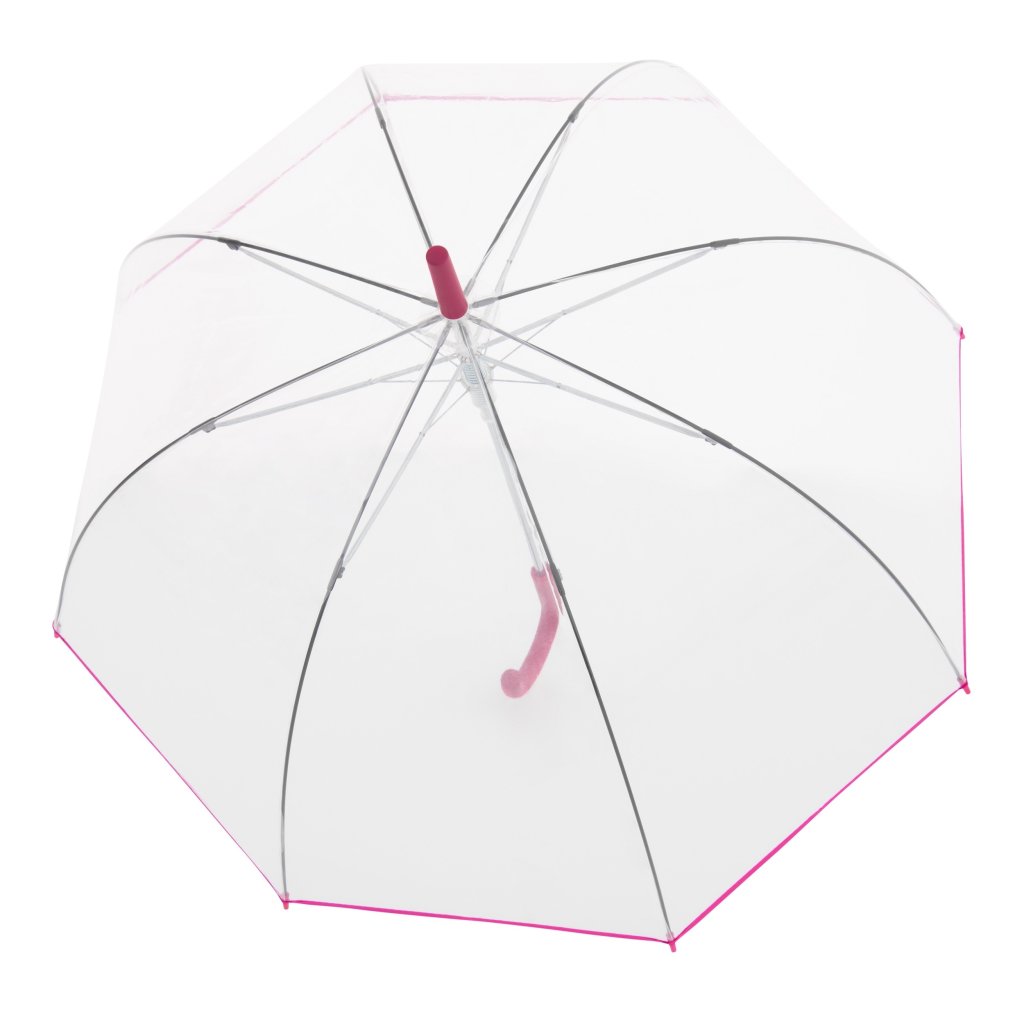 Nizza Transparent to damski, przezroczysty parasol automatyczny typu "kij", pod którym wygodnie zmieszczą się nawet dwie osoby. Pomimo średnicy czaszy przekraczającej 1 m, jest on stosunkowo lekki (waży 350 gramów). Wynika to z jego wysokiej jakości, lekkiej konstrukcji ze szkło-włókna i stali, która sprawia, że jest również odporny na warunki atmosferyczne - parasol był testowany w tunelu aerodynamicznym do prędkości 100 km/h. Przezroczysta poszycie jest ozdobione elegancką różową lamówką, która gustownie komponuje się z różową rączką.