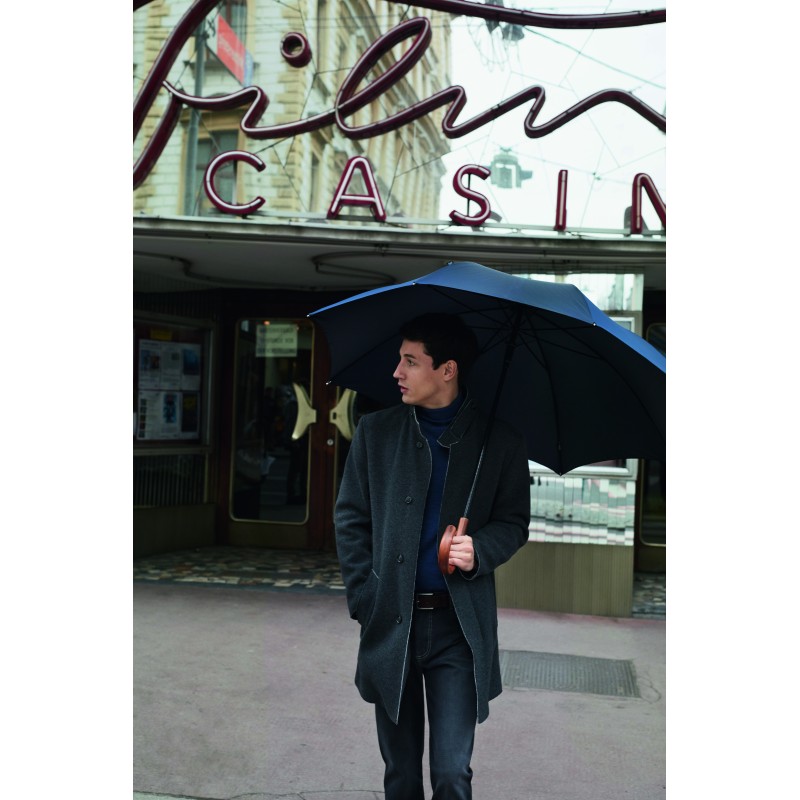 Elegancki męski parasol strzelający modnej marki bugatti. Wiatroodporna konstrukcja z włókna szklanego i drewna. Duży dach. Poliestrowe poszycie jest odporne na zmiany wilgotności i temperatury, nie kurczy się.