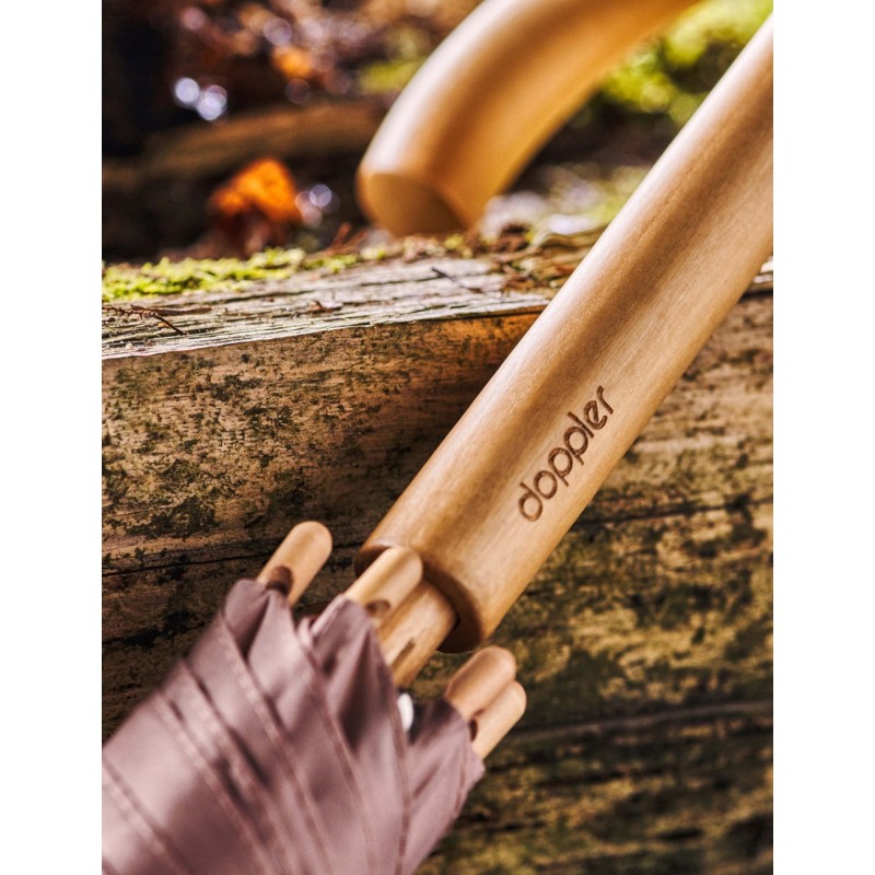 Parasol EKO dla kobiet. Wykonany z ekologicznych materiałów, 3 lata gwarancji. Wiatroodporny - testowany w tunelu aerodynamicznym do 100 km/h (w pełni automatyczny). Tkanina parasola wykonana z 2 przetworzonych butelek pet, drewno schima superba. 100% wolny od pfc - hydrofobowość zapewniają tkaniny, które nie zawierają szkodliwych substancji chemicznych...