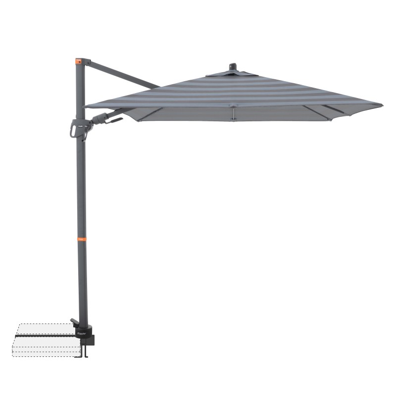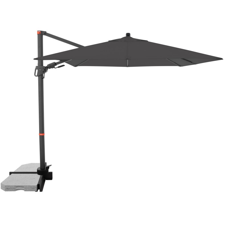 Dzięki kwadratowemu dachowi parasol szczególnie nadaje się do zacieniania mebli ogrodowych. Parasol można również obracać o 360 stopni , obracać w obie strony i odchylać do tyłu w siedmiu pozycjach.