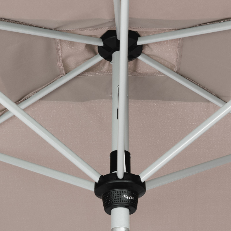 Wygodna funkcja automatycznego odchylania umożliwia odchylenie dachu za pomocą jednego obrotu korby. Poszycie parasola wykonane jest w 100% z odpornej na warunki atmosferyczne tkaniny poliestrowej o dobrej odporności na światło i dobrej ochronie przed promieniowaniem UV 50+. Nowoczesne kolory tego parasola uprzyjemnią pobyt w ogrodzie lub na tarasie. Dzięki otworowi wentylacyjnemu w dachu, gorące letnie powietrze nie gromadzi się pod parasolem, a parasol jest również bardziej odporny na podmuchy wiatru.