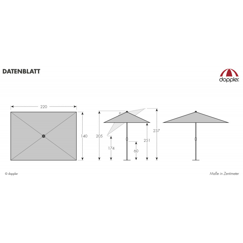 Parasol przeciwsłoneczny z uchwytem ma wysokiej jakości aluminiową konstrukcję i funkcję automatycznego pochylania. Jego wysokość można regulować. Czasza parasola wykonany jest w 100% z odpornej na warunki atmosferyczne tkaniny poliestrowej z dobrą ochroną przed promieniowaniem UV 80+.