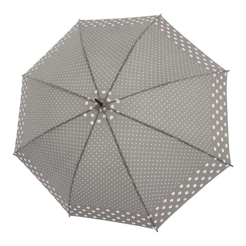 Hit Long Automatic Twinkle to parasol z wyrzutnikiem o ponadczasowym designie w kropki. Ma wysokiej jakości konstrukcję z czarnej stali i włókna szklanego, która sprawia, że parasol jest trwały, a jednocześnie chroni go przed uszkodzeniem przez wiatr. Nawet jeśli parasol zostanie przewrócony przez wiatr, nie zostanie uszkodzony, parasol można łatwo odwrócić z powrotem do pierwotnej pozycji. Poszycie wykonane jest z przyjemnej w dotyku tkaniny pongee, która dobrze znosi zmiany fal i temperatur, nie kurczy się.