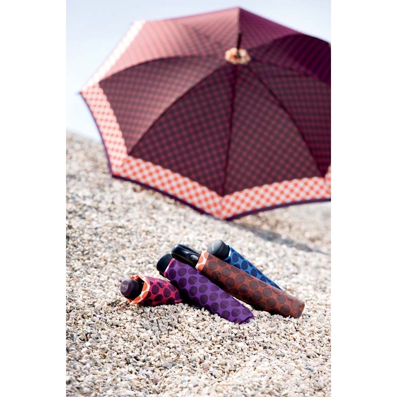 Magic Hit Polka to w pełni automatyczny parasol dla kobiet z ponadczasowym wzorem w kropki. Parasol można łatwo otworzyć i zamknąć za pomocą jednego przycisku. Ma mocną i trwałą konstrukcję z czarnej stali oraz poszycie z poliestru, które nie kurczy się i dobrze dostosowuje do zmian wilgotności lub temperatury.