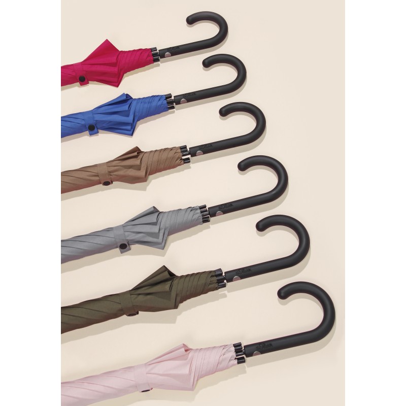 Damski parasol strzelecki z trzonkiem. Szkielet parasola wykonany ze stali w kolorze czarnym gwarantuje wytrzymałość i stabilność. Poliestrowe poszycie jest odporne na zmiany wilgotności i temperatury, nie kurczy się. Duży dach.