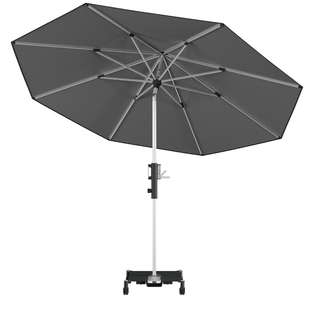 Luksusowy parasol ogrodowy od marki premium Knirps jest regulowany na wysokość do 15 cm i wyposażony w mechanizm korbowy umożliwiający łatwe przechylanie. Posiada lekką i solidną aluminiową konstrukcję oraz wysokiej jakości pokrowiec z recyklingowanego PET poliestru o wysokiej ochronie przed promieniowaniem UV SPF 80. Aluminiową konstrukcję można łatwo zablokować w odpowiednim stojaku - bez zginania lub wkręcania.