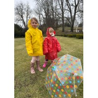Dziecięcy płaszcz przeciwdeszczowy w kolorze czerwonym z kapturem i zatrzaskami. Płaszcz przeciwdeszczowy jest składany i nadaje się na wycieczki oraz do codziennego noszenia w mieście i szkole. Mocny, trwały materiał w porównaniu do ""normalnych"" płaszczy przeciwdeszczowych, po prostu się nie zepsuje.