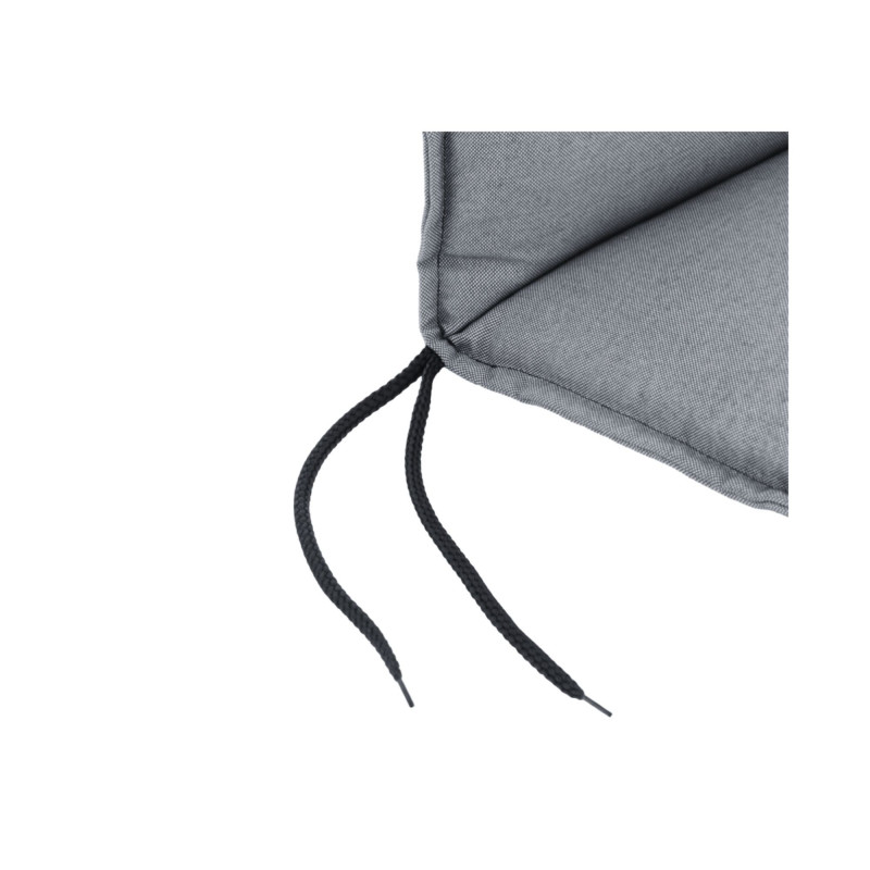 Poduszka ze średnim oparciem do mebli ogrodowych z serii CITY w wersji z obszytym brzegiem, przeszyta 1x w siedzisku, 1x w oparciu. Mocowanie odbywa się za pomocą przesuwanej klamry. Dzięki klamrze można dopasować rozmiar do wielkości i rodzaju krzesła, klamra jest zamocowana na stałe i nie wysuwa się. Siedzisko jest mocowane za pomocą dwóch sznurowadeł w zagięciu poduszki. Pokrowca nie można zdjąć.
