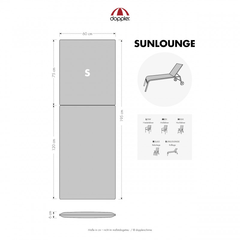 Poduszka na leżak ogrodowy Seria LIVING to z obszytą krawędzią, przeszyta 4-krotnym szwem pierścieniowym w oparciu. Mocowanie odbywa się za pomocą przesuwanego zapięcia. Dzięki klamrze można dostosować rozmiar do rozmiaru i rodzaju krzesła, klamra jest stała i nie wysuwa się. Mocowanie siedziska odbywa się za pomocą dwóch sznurków w zagięciu poduszki. Wytrzymałość poduszki jest optymalna dla wszystkich rodzajów krzeseł. Konstrukcja nadaje się również do wymagających warunków kawiarni, ogrodów i restauracji. Czasza parasola jest nieusuwalny.