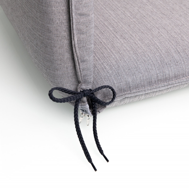 Poduszka do fotela relaksacyjnego serii ELEGANT posiada obszyty brzeg. Mocowanie odbywa się za pomocą przesuwanego klipsa. Dzięki klamrze można dopasować rozmiar do wielkości i rodzaju krzesła, klamra jest stabilna i nie wysuwa się. Siedzisko zapinane jest na dwie sznurówki w zagięciu poduszki. Konstrukcja nadaje się również do wymagających warunków kawiarni, ogrodów i restauracji. Poduszka zapinana jest na zamek błyskawiczny , poszewkę można zdejmować i można ją prać ręcznie.
