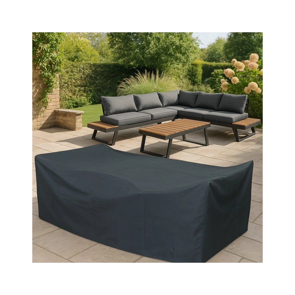 Wytrzymałe pokrowce z wysokiej jakości poliestru ochronią Twoje meble przed światłem, deszczem i brudem. Używanie pokrowca ochronnego na meble ogrodowe znacznie przedłuży ich żywotność. Przed użyciem umieść poszczególne elementy zestawu jak najbliżej siebie i przykryj pokrowcem. Dla lepszego odpływu wody deszczowej, dobrze jest umieścić między stołem a pokrowcem np. wiadro, tak aby powstała podwyższona przestrzeń i woda mogła swobodnie spływać po bokach. Dla lepszego mocowania podczas wietrznej pogody, w rogach plandeki znajdują się oczka z linkami do mocowania do mebli. Pokrowiec ochronny jest bardzo odpowiedni również do zimowania.