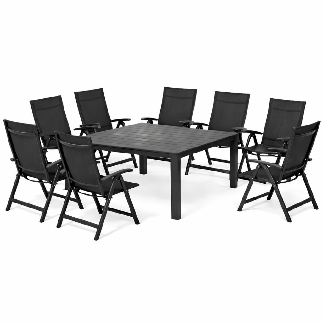 Aluminiowy zestaw wypoczynkowy PRATO AVANTAGE to idealne rozwiązanie dla osób poszukujących stylowych, funkcjonalnych i trwałych mebli do przestrzeni zewnętrznych. Ten elegancki zestaw, składający się z nowoczesnego kwadratowego stołu jadalnianego i ośmiu regulowanych krzeseł, zapewnia doskonały komfort i estetykę dla Twojego tarasu lub ogrodu.