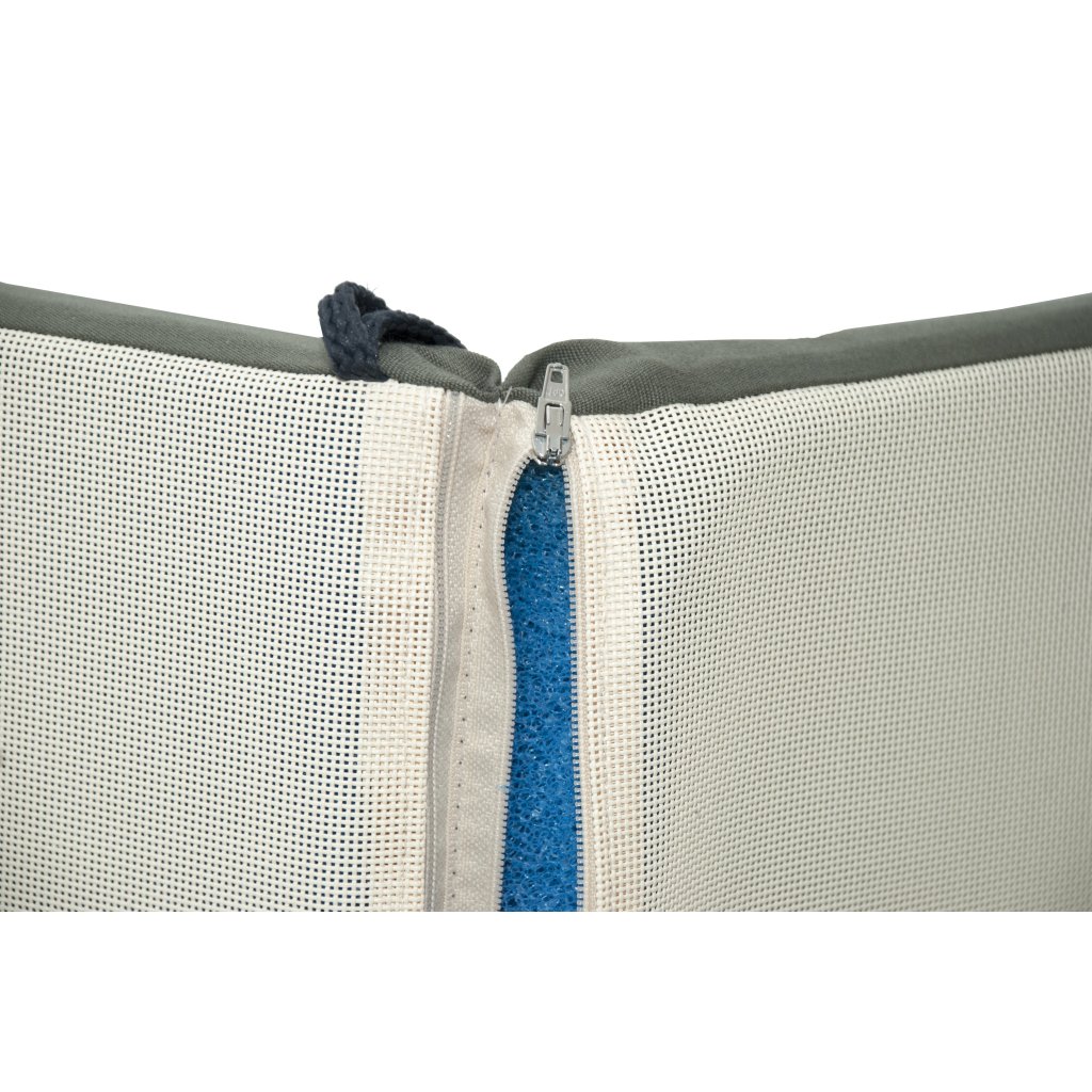 Poduszka na leżak ogrodowy z serii QUICKDRY jest z wodoodporną technologią, specjalną przepuszczającą warstwą tylną i szybko przepuszczającym wypełnieniem. Mocowanie odbywa się za pomocą przesuwnego klipsa. Dzięki klamrze można dostosować rozmiar do wymiarów i rodzaju krzesła lub leżaka, klamra jest mocna i nie rozciąga się. Mocowanie siedziska odbywa się za pomocą dwóch sznurków w zgięciu poduszki. Poduszka jest wyposażona w zamek błyskawiczny, dzięki czemu pokrowiec można zdjąć i wyprać.