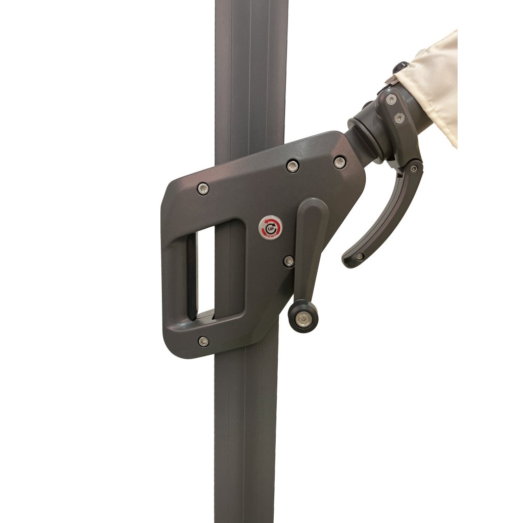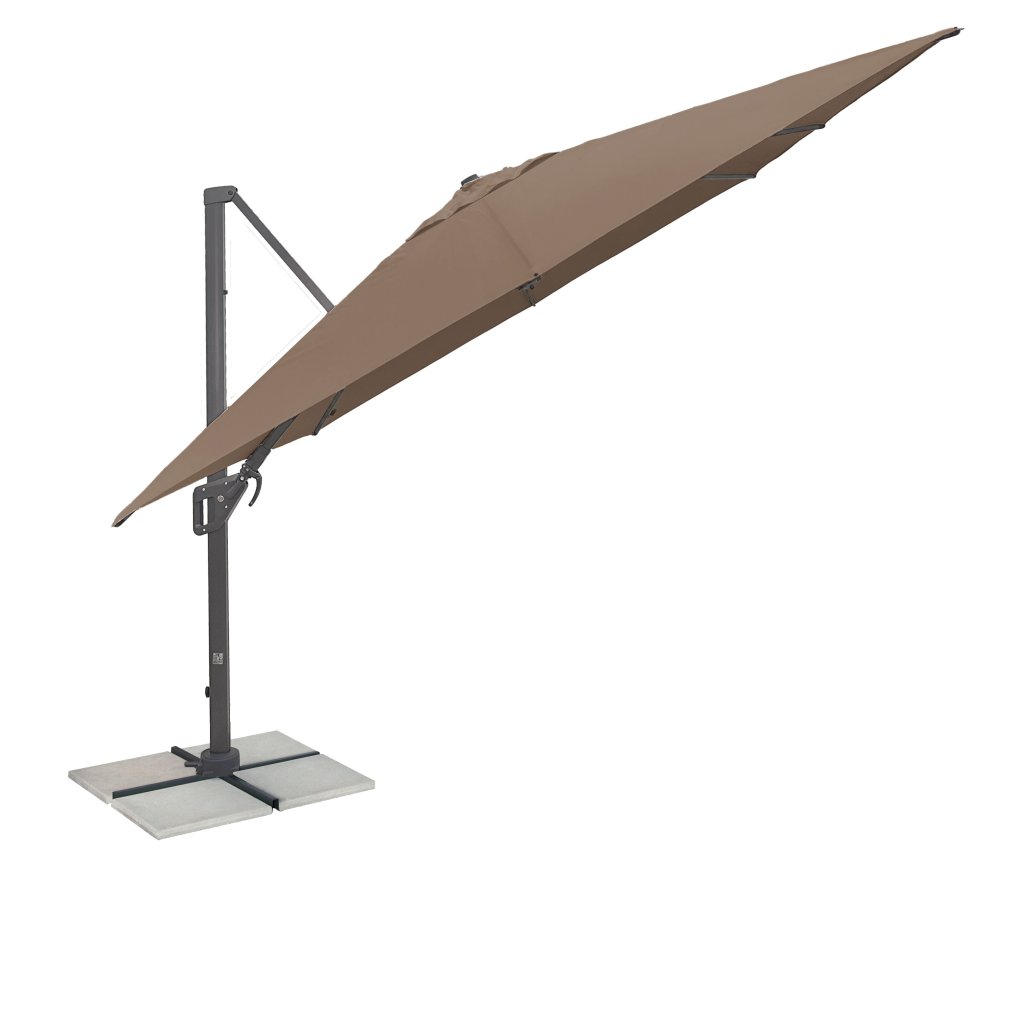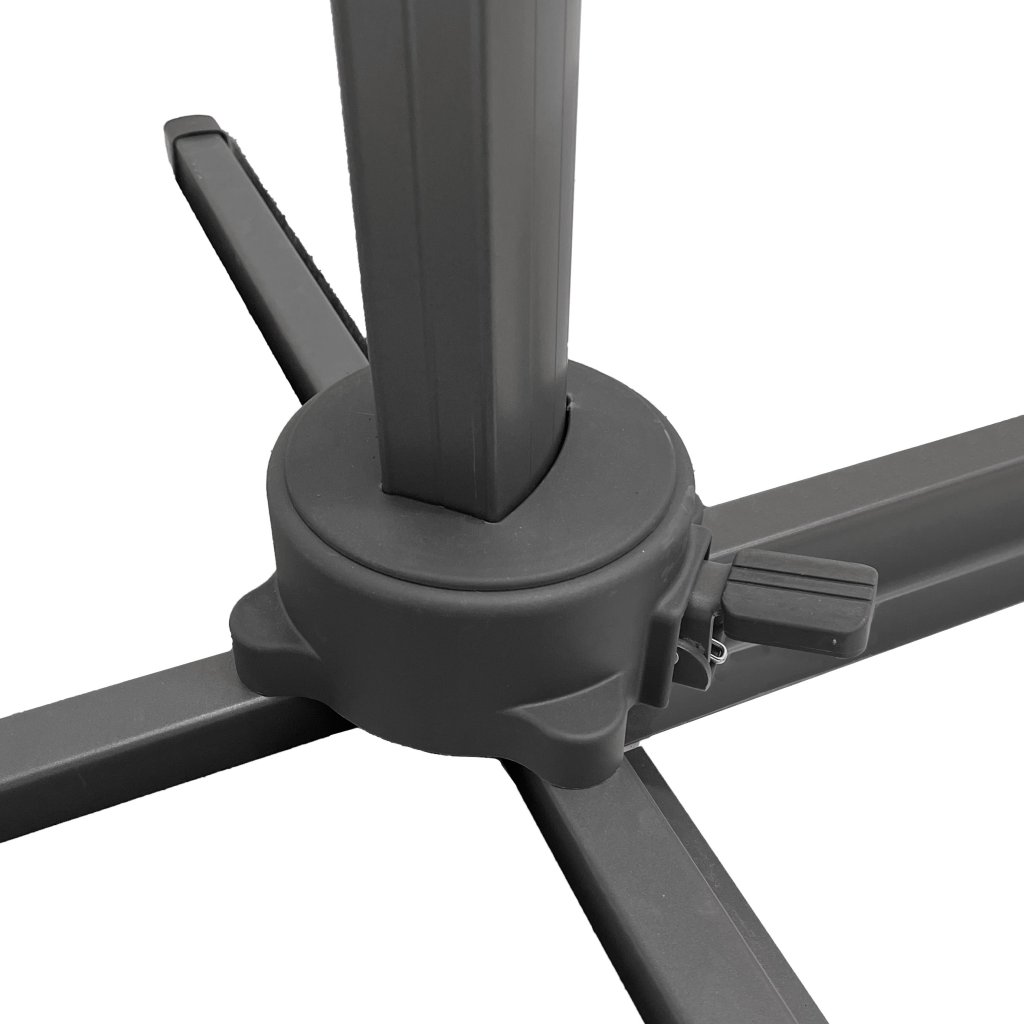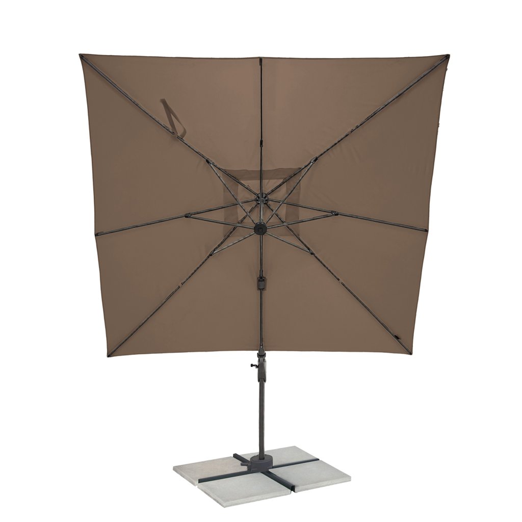 Parasol z aluminiową konstrukcją, posiadający elegancki i komfortowy mechanizm dla łatwiejszej obsługi. Pokrowiec wykonany jest z tkaniny poliestrowej i jest wodoodporny, ma bardzo dobrą ochronę przed promieniowaniem UV SPF 50+. Stojak jest częścią parasola (bez płyt 50 x 50 x 4 cm). Parasol jest obrotowy o 360° i można go przechylać wzdłuż głównego drążka, co pozwala na zacienienie przez cały dzień zgodnie z potrzebami.
