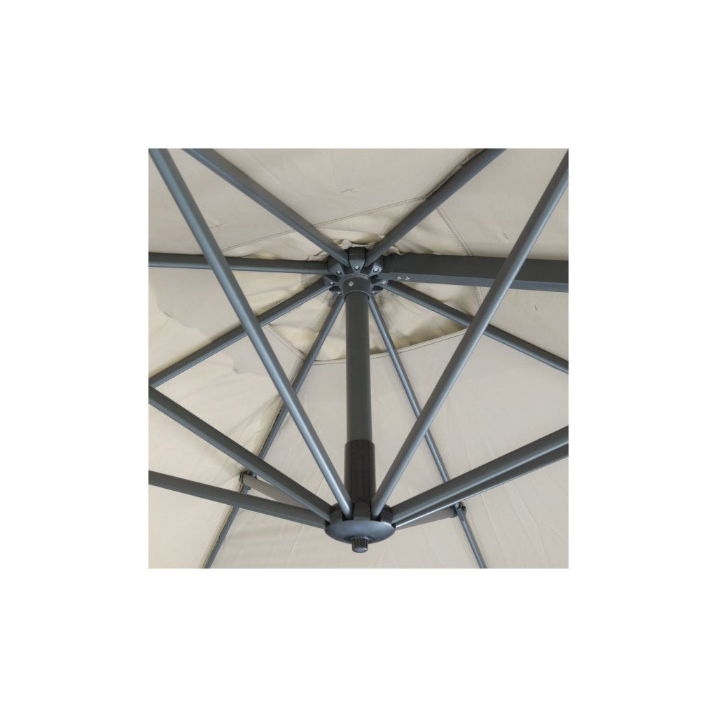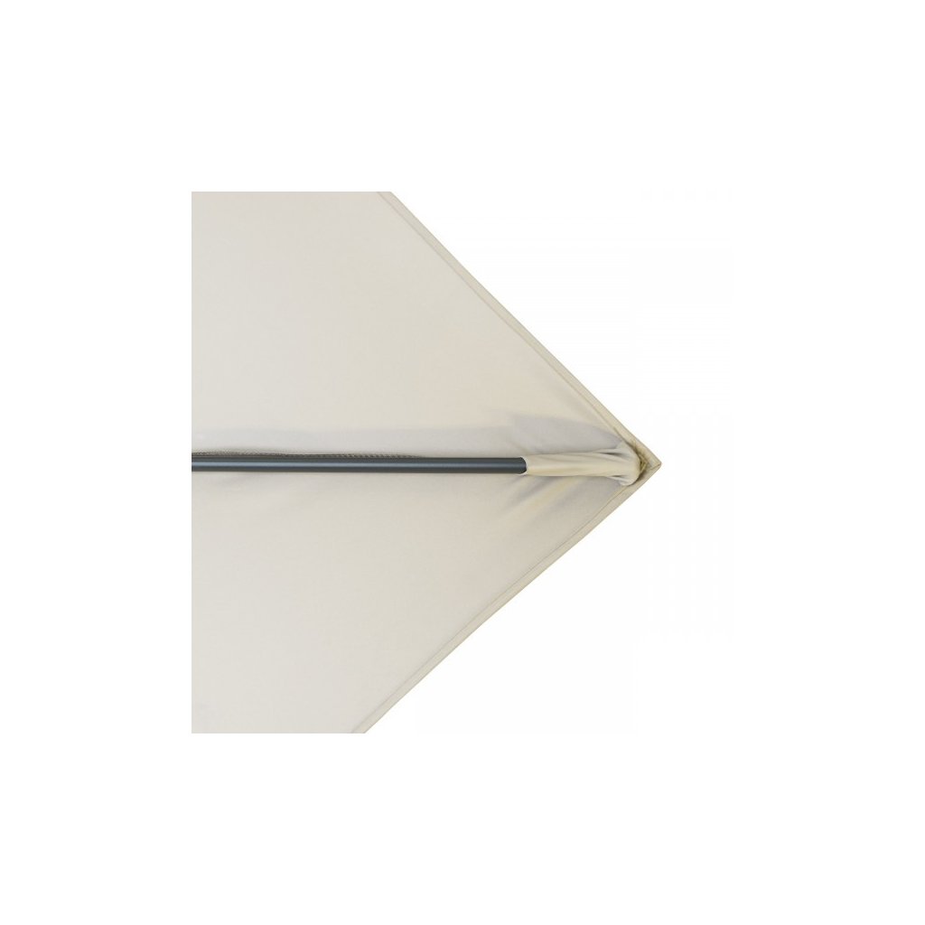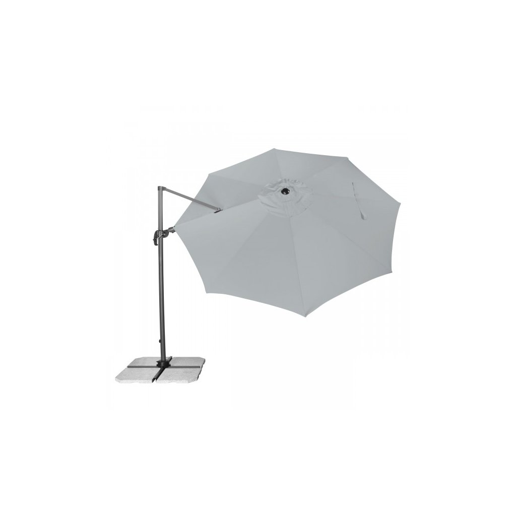 Funkcjonalny parasol jest wyposażony w mechanizm korbowy i jest łatwy w obsłudze. Pokrowiec parasola wykonany jest z tkaniny poliestrowej, jest wodoodporny i posiada dobrą ochronę UV SPF 50+. Parasol można obracać o 360°, można go pochylać w siedmiu pozycjach i obracać osiowo w obie strony. Parasol jest dostarczany ze stojakiem na 4 płyty 50x50x4 cm (bez płyt 50x50x4 cm).
