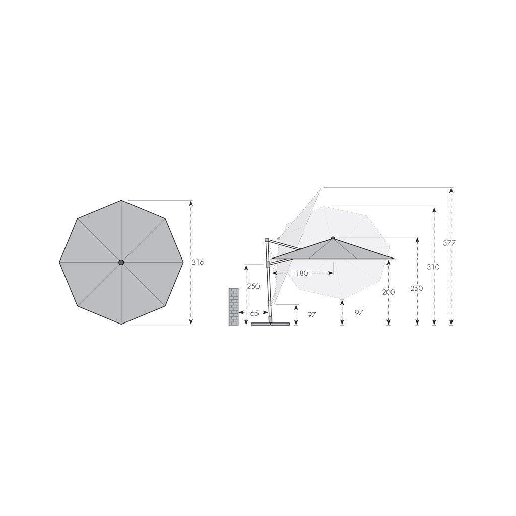 RAVENNA 330 cm – duży, obrotowy parasol ogrodowy z bocznym wysięgnikiem