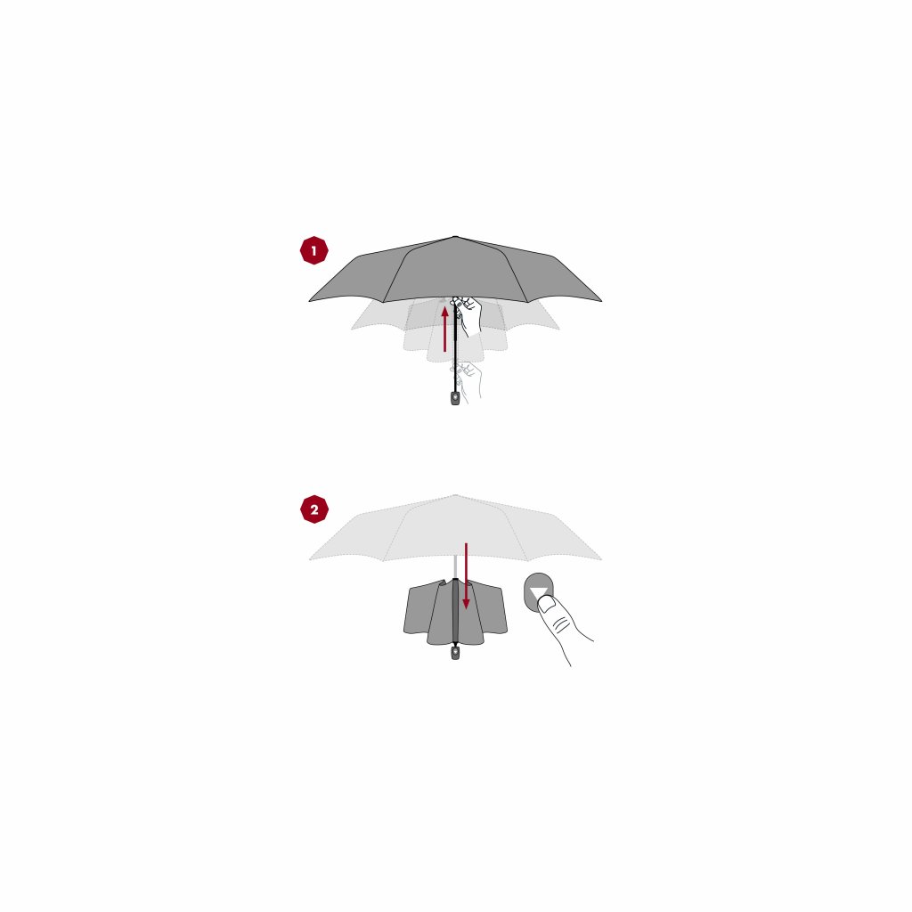 Inteligentne zamykanie to praktyczny, jednokolorowy parasol wyposażony w funkcję inteligentnego zamykania. Jednym naciśnięciem przycisku parasol zamyka się i opada, dzięki czemu cały proces można wykonać szybko i łatwo jedną ręką. Posiada lekką, ale wytrzymałą konstrukcję z aluminium i stali, uzupełnioną koroną ze włókna szklanego, dzięki czemu parasol nie zniszczy się, nawet gdy obróci go wiatr. Pokrycie wykonane jest z tkaniny pongee, która jest przyjemna w dotyku, a jednocześnie odporna na zmiany wilgotności i temperatury, nie kurczy się.