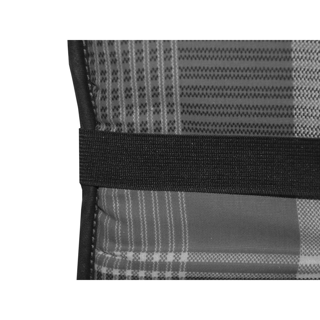 Poduszka z wysokim oparciem do mebli ogrodowych z serii SPOT jest wykonana z obszytym brzegiem, przeszyta 2x w oparciu. Mocowanie za pomocą przesuwnego klipsa lub mocnej gumy. Dzięki klipsowi można dopasować rozmiar do wymiarów i rodzaju krzesła, klips jest mocny i się nie rozciąga. Mocowanie siedziska odbywa się za pomocą sznurków w zgięciu poduszki. Pokrowiec poduszki jest nieściągalny.