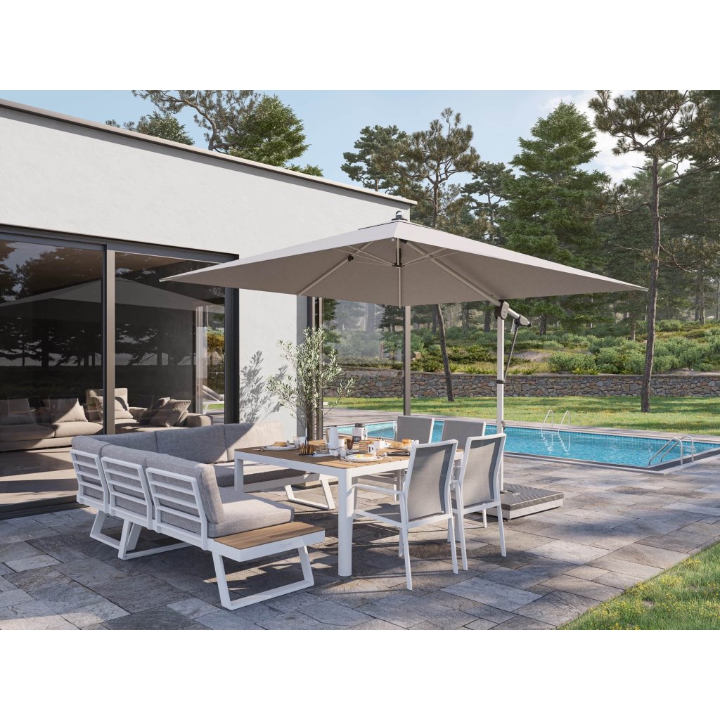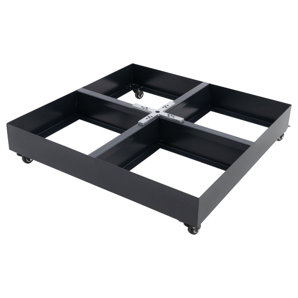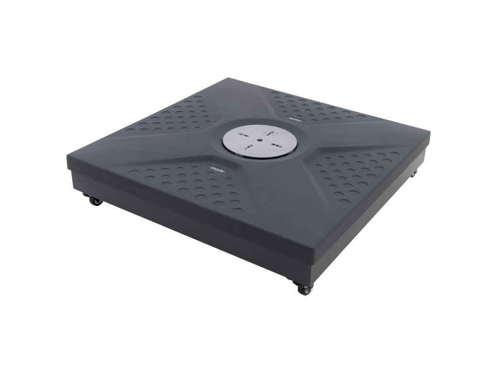 Stojak na płyty stanowi idealne rozwiązanie do stabilnego mocowania parasoli z boczną nogą. Konstrukcja podstawy składa się z solidnej stalowej ramy z ocynkowanej, malowanej proszkowo stali z wysokiej jakości plastikową osłoną. Nadaje się do przechowywania 4 płyt obciążeniowych o wymiarach 40 x 40 cm, o maksymalnej wysokości płyty 4 cm. Za pomocą czterech śrub można szybko zamocować parasol w wyznaczonym miejscu. Dzięki kółkom u dołu można go łatwo przesunąć na pożądaną pozycję na tarasie. Nadaje się do parasoli o średnicy czaszy do 400 cm.