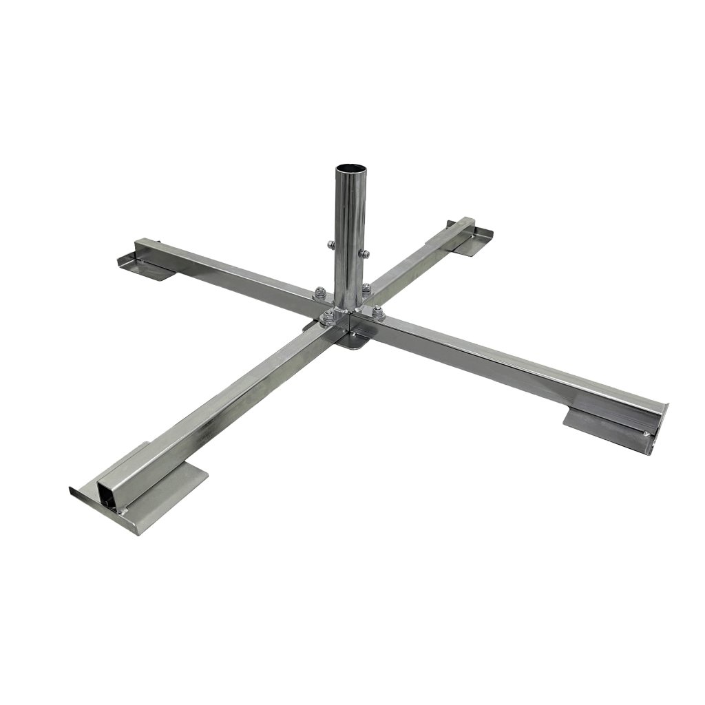 Podstawa wykonana z stali nierdzewnej przeznaczona jest do płyt betonowych lub granitowych 50×50 cm i zapewnia solidną stabilność nawet większym parasolom o średnicy do 500 cm. Aby zapewnić prawidłowe działanie, należy dobrać odpowiednią wagę płyt.