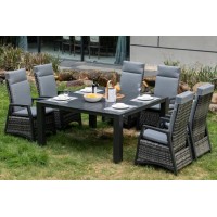 Nowoczesny, duży, kwadratowy stół ogrodowy o ponadczasowym wzornictwie, ze stabilną aluminiową konstrukcją w kolorze antracytowym. Stół nadaje się do większych tarasów i ogrodów. Blat stołu wykonany jest z żebrowanego aluminium. Stół jest solidny , a jednocześnie lekki i stabilny .