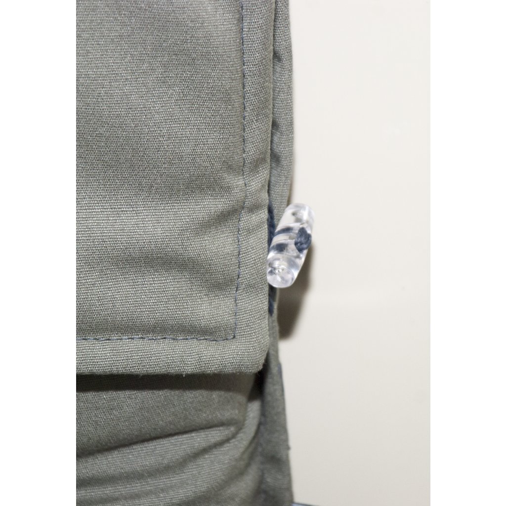 Poduszka na fotel relaksacyjny z serii STYLE jest wykonana z obszytym brzegiem, pikowana okręgowo 4x w oparciu. Mocowanie odbywa się za pomocą przesuwnego klipsa. Dzięki klipsowi można dopasować rozmiar do wymiarów i rodzaju krzesła, klips jest mocny i się nie rozciąga. Mocowanie siedziska odbywa się za pomocą dwóch sznurków w zgięciu poduszki. Pokrowiec nie jest zdejmowany.Poszycie poduszki posiada impregnację TEFLONEM chroniącą przed brudem i pleśnią. Dzięki tej impregnacji brud pozostaje na powierzchni impregnacji, a zanieczyszczenia nie przedostają się do poszczególnych włókien poszycia. Tkanina łatwo się czyści wilgotną ściereczką i jest znacznie bardziej odporna na wilgoć.