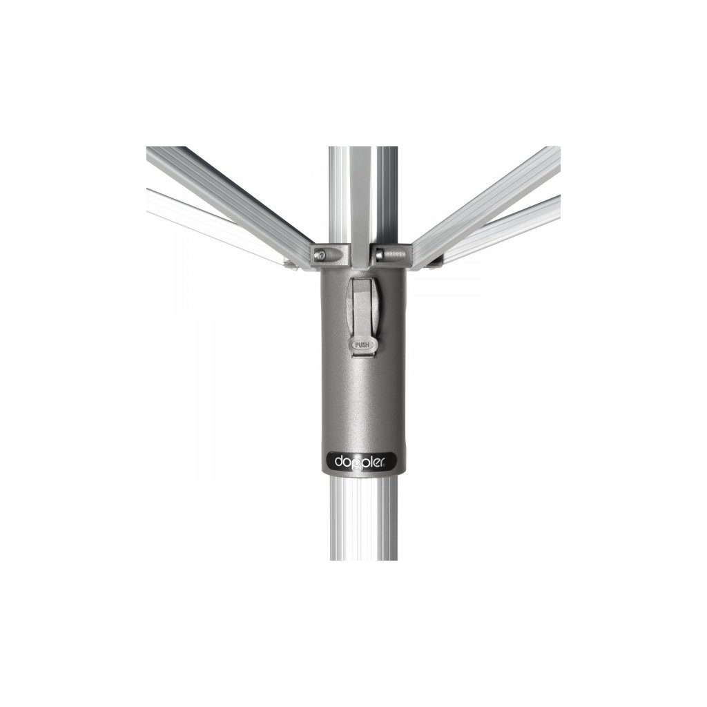 Profesjonalny, solidny parasol z wygodnym otwieraniem za pomocą Doppler teleskopowego systemu automatycznego, który umożliwia łatwe otwieranie parasola jedną ręką. Solidna konstrukcja parasola wykonana jest z profilowanego aluminium, a wszystkie jego połączenia są skręcane.