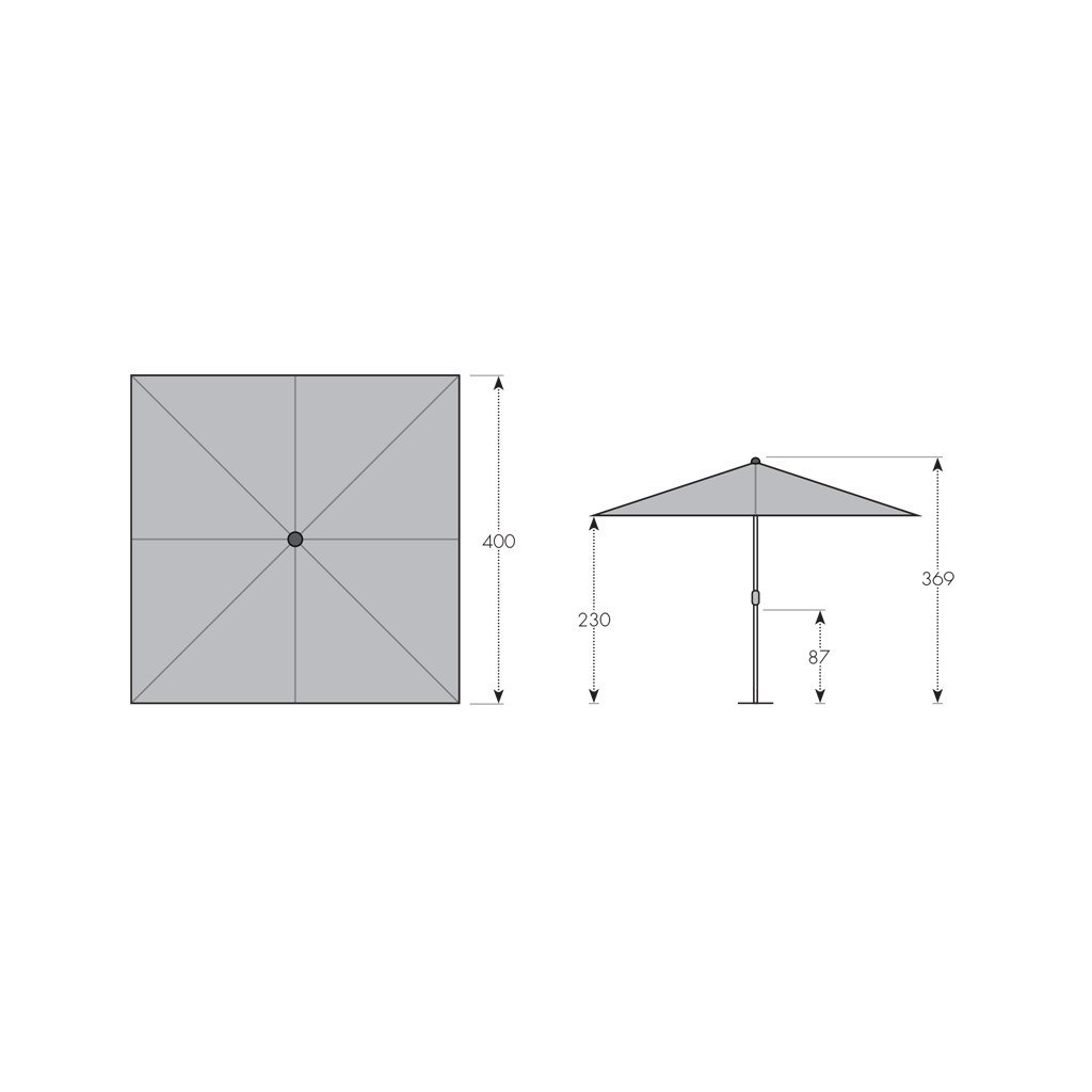 - całkowita wysokość otwartego parasola: 369 cm
