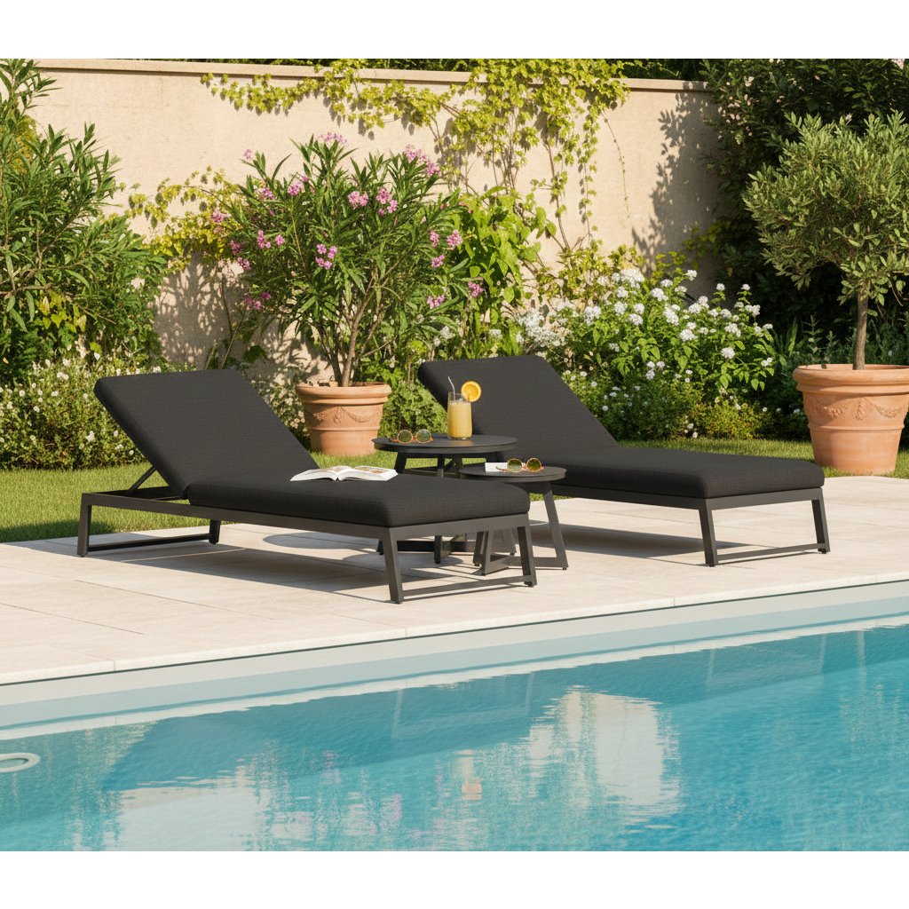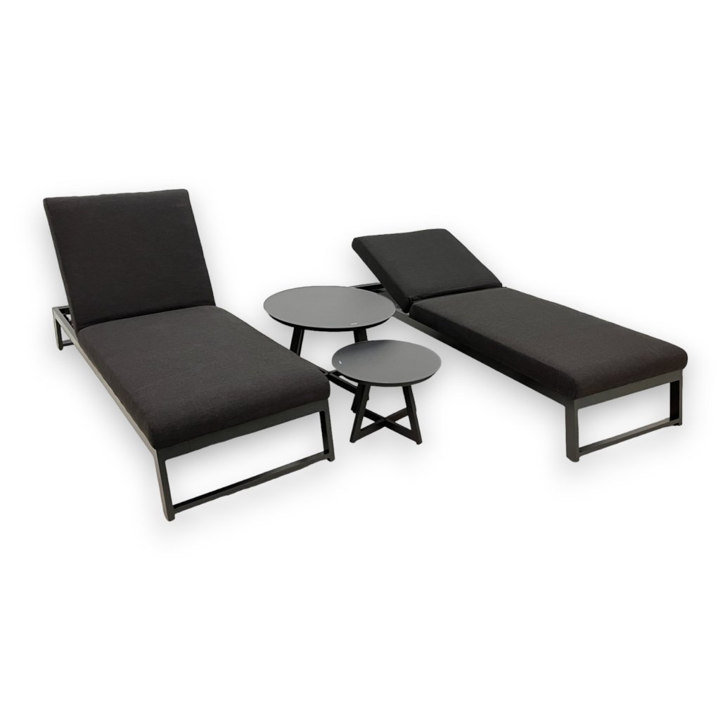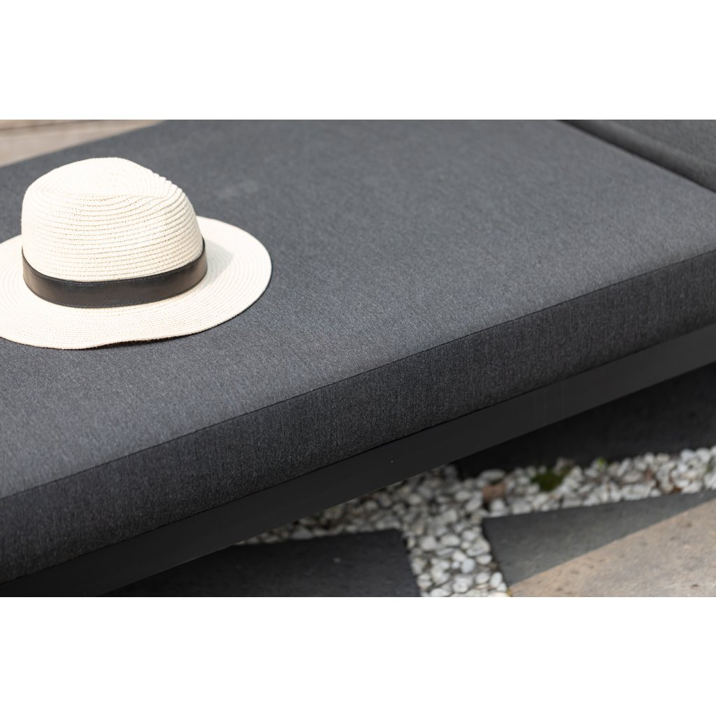 Głównym elementem zestawu jest ergonomiczna leżanka aluminiowa Melia LIKA-TEX® w eleganckim kolorze antracytowym. Miękka, zintegrowana wyściółka wykonana z zaawansowanego materiału LIKA-TEX® gwarantuje wysoki komfort leżenia oraz odporność na promieniowanie UV , wilgoć i pleśń. Leżanka jest w pełni regulowana – oferuje 5 różnych ustawień dla maksymalnego relaksu. Dzięki specjalnemu materiałowi może pozostać na zewnątrz przez cały rok bez konieczności skomplikowanej konserwacji.