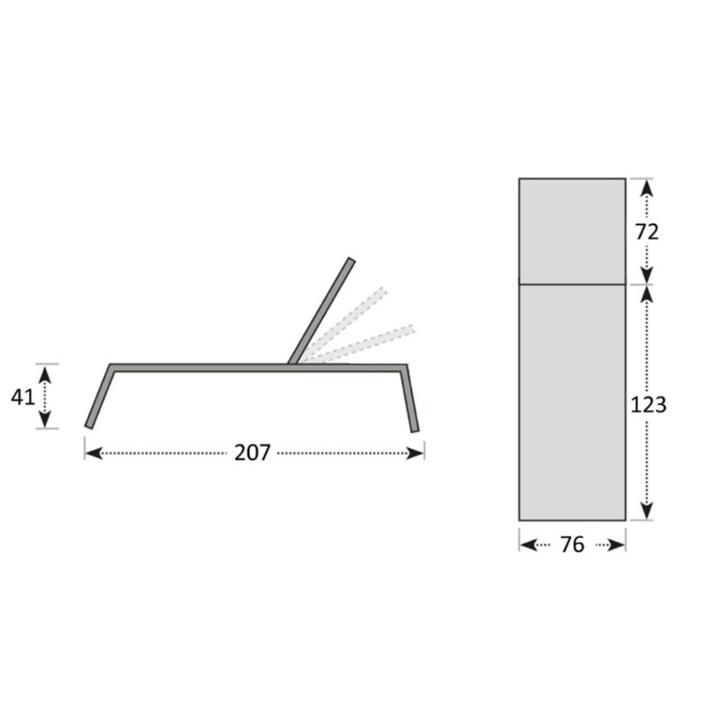 - 1x luksusowe leżak Melia LIKA-TEX®: antracytowe aluminium, 5 pozycji, wymiary: 207 × 76 × 41 cm, maks. obciążenie: ok. 120 kg