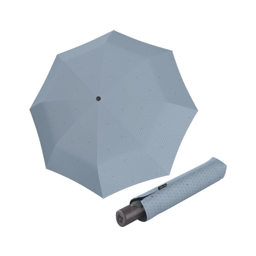 Zrównoważony świat, w którym dbamy o zasoby naszej Ziemi - to nasza wizja na przyszłość. Knirps Vision to skrót od nowej świadomości ekologicznej. Ten model jest wykonany z wodoodpornego i odpornego na zabrudzenia materiału PET pochodzącego z recyklingu, bez dodatku PFC. Ekologiczny biodegradowalny bioplast Trifilon firmy Ecorepel zastępuje zwykły plastik.
